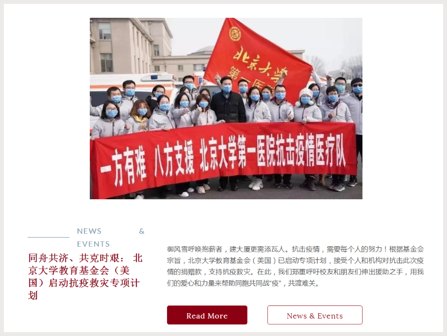 北京大学教育基金会(美国)官网发布抗疫救灾专项信息