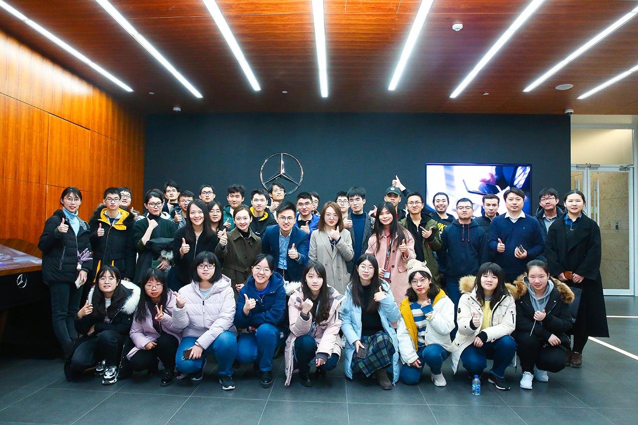 12月12日,北京大学奔驰奖助学金获奖学生开放日暨沟通交流会在戴姆勒大厦举行,奔驰奖助学金获奖学生代表前往参观交流。