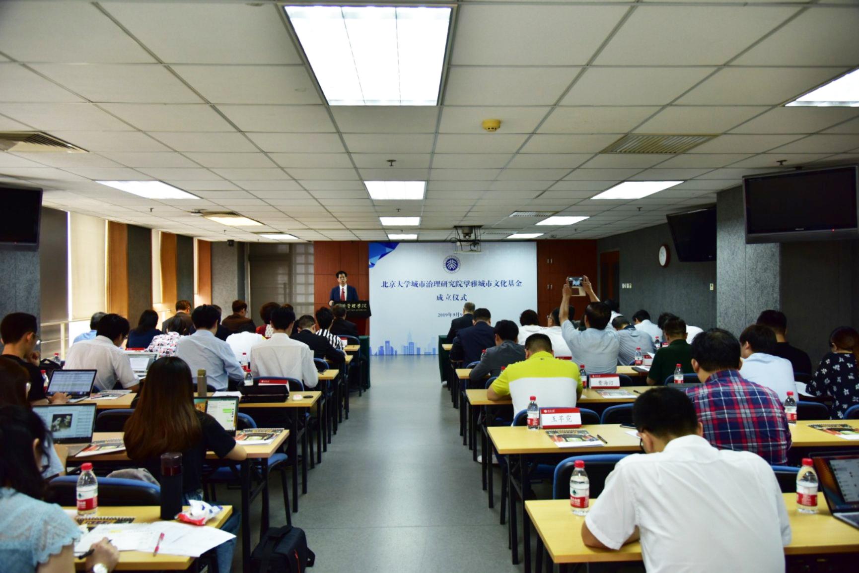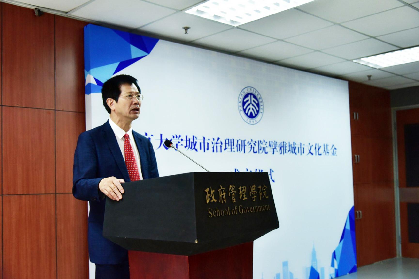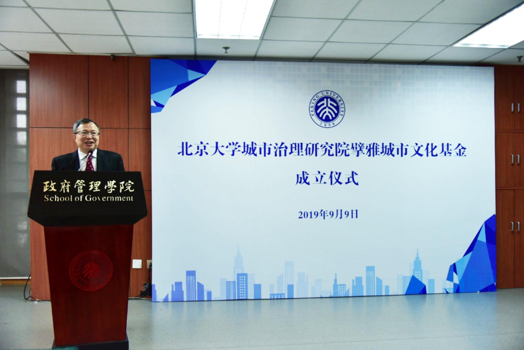 9月9日,北京大学城市治理研究院擘雅城市文化基金成立仪式在北京大学廖凯原楼举行。北京大学副校长王仰麟、恒源祥集团董事长刘瑞旗先生出席仪式,北大教育基金会相关负责人、政府管理学院党政领导以及师生代表等约70人参加了成立仪式。著名学者、北京大学城市治理研究院院长俞可平发表主题演讲。