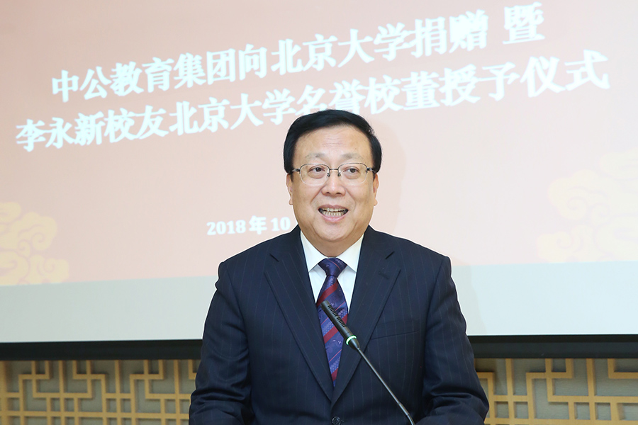 李永新于1999年毕业于北京大学政治学与行政管理系(现北京大学政府管理学院),现任中公教育集团董事长。李永新校友对母校的发展一直给予热心关注和大力支持。中公教育集团曾捐赠逾3000万元,支持政府管理学院的教学科研、人才培养和学校发展建设。此次,中公教育集团再次捐资1亿元,支持北大品质校园建设、校友工作和人文学科发展。这是北京大学在校庆年收获的一份厚礼。(记者:王婷)