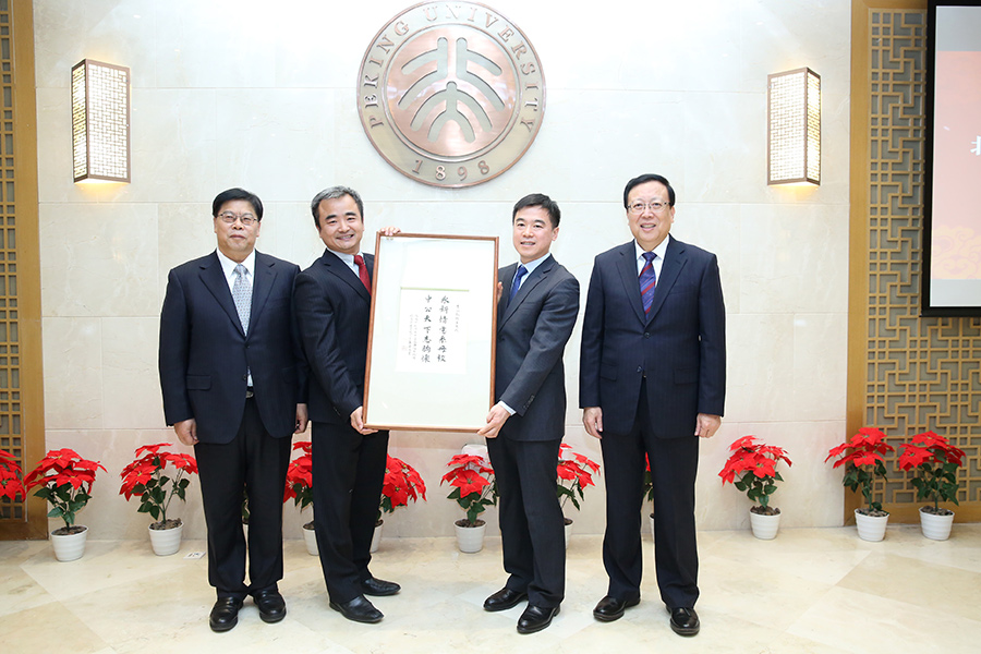 中公教育集团董事长李永新、副总裁吴敏娜、张红军等校友和北京大学党委书记邱水平、校长郝平、校友会执行副会长邓娅、政府管理学院党委书记李海燕、常务副院长燕继荣、副书记姚静仪、房地产管理部部长殷雪松、教育基金会秘书长李宇宁、副秘书长耿姝、校友工作办公室主任李文胜、副主任张向英等共同出席。王仰麟副校长主持仪式。