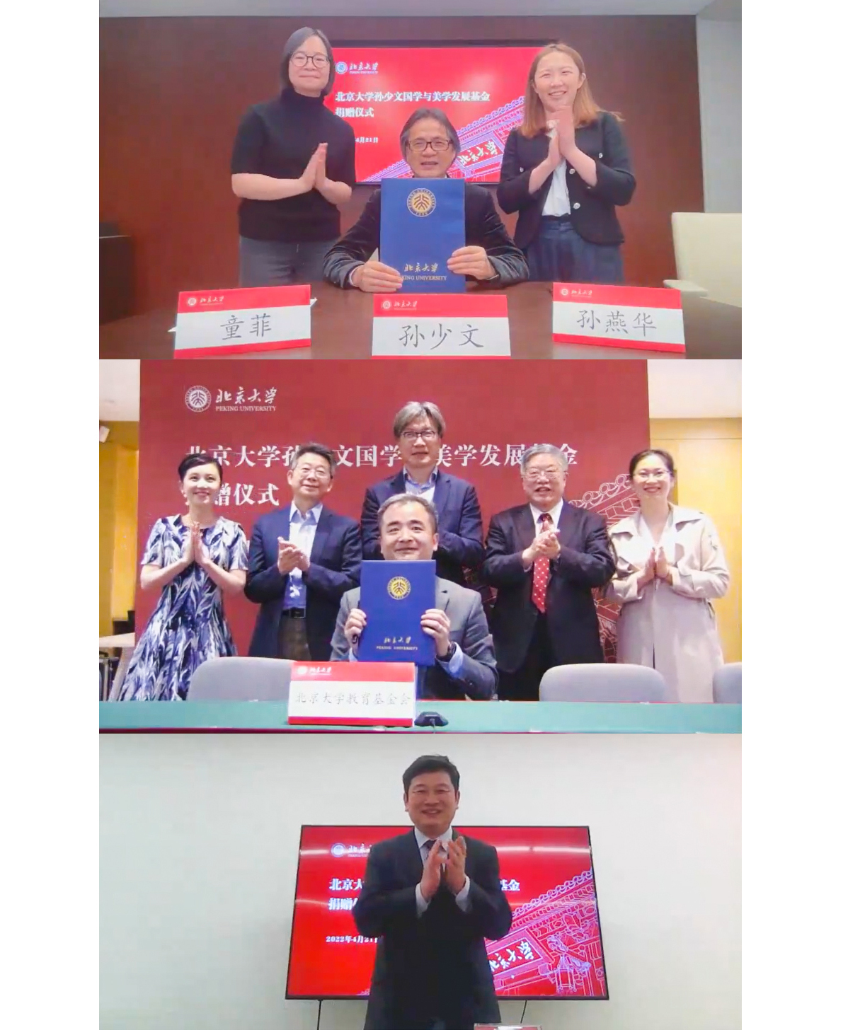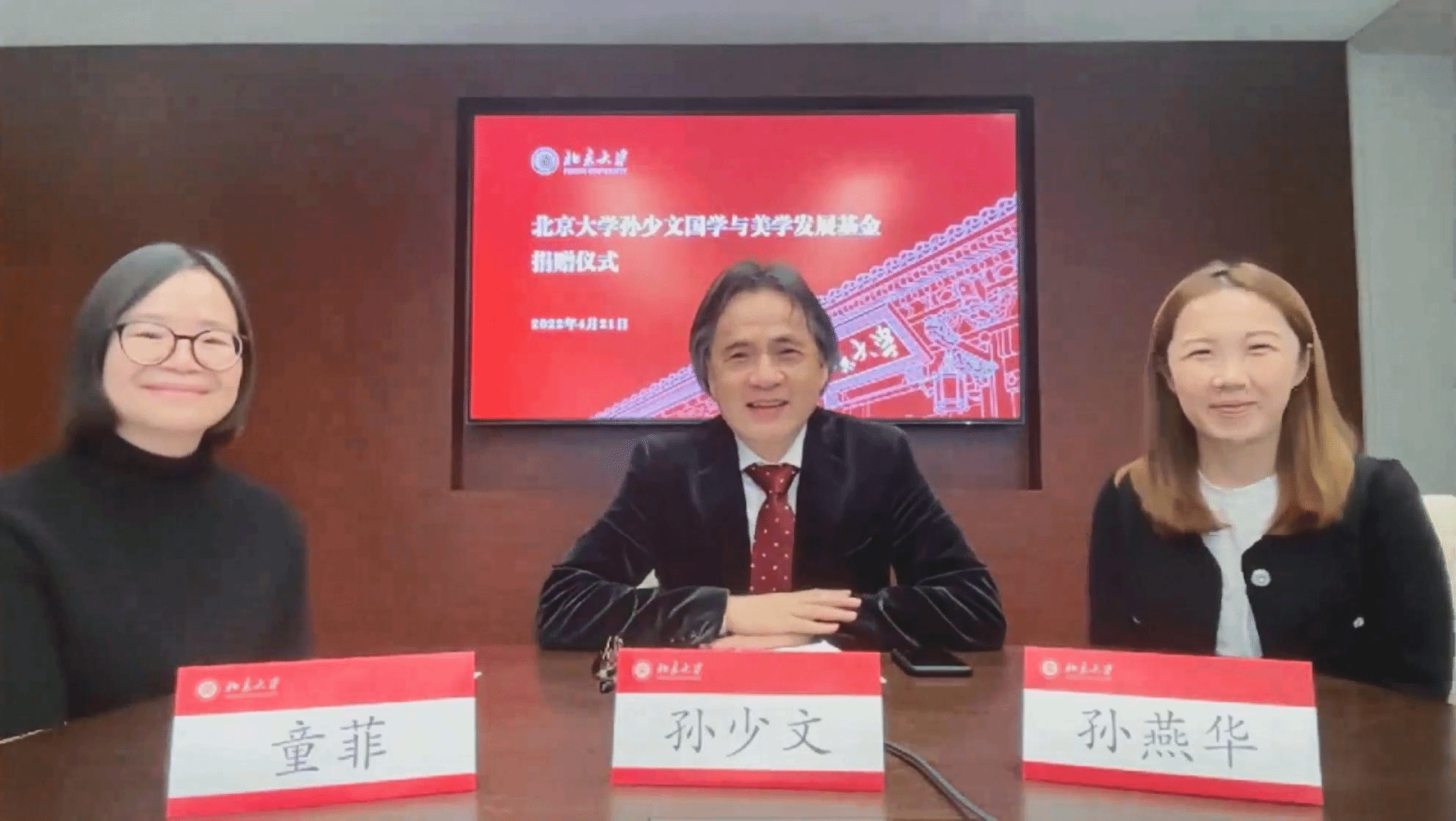 4月21日,北京大学孙少文国学与美学发展基金捐赠仪式通过线上方式举行。全国政协委员孙少文博士捐资设立北京大学孙少文国学与美学发展基金,支持北大国学与美学领域的学术研究和人才培养,促进中华传统文化的继承和弘扬,推动国家文化建设的繁荣发展。