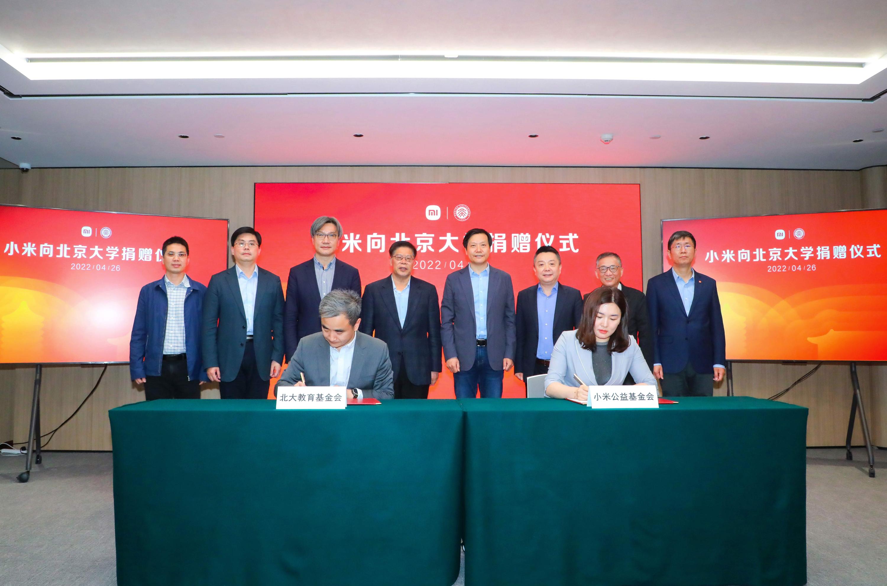 4月26日,“北京大学小米创新公益基金”捐赠签约仪式在北京小米科技园举行。本次捐赠由小米公益基金会发起,旨在推动北京大学在集成电路、心理与认知等领域的前沿研究和科技创新,培养一批能够在相关学术研究领域和业界引领未来的高水平、创造性、复合型人才,支持北京大学的全面发展。小米集团创始人、董事长兼CEO雷军,方正控股有限公司、金山软件有限公司创始人张旋龙,小米集团合伙人、总裁王翔,小米集团联合创始人、高级副总裁、小米公益基金会理事长刘德;北京大学党委书记、教育基金会理事长邱水平,北京大学副校长、教育基金会副理事长王博等领导出席捐赠仪式。