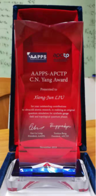 由于在超冷原子量子模拟领域作出的重要贡献,北京大学量子材料中心的刘雄军教授荣获亚太物理学会和亚太理论物理中心杨振宁奖(CN Yang Award)。刘雄军的此次获奖是为了表彰他“在超冷原子人工规范场和拓扑量子模拟领域作出的杰出原创贡献”(For his outstanding contributions to ultracold atomic research, in realizing an original quantum simulation for synthetic gauge field and topological quantum phases)。颁奖仪式在2019年11月17日至22日于马来西亚古晋召开的14届亚太物理大会上举行。亚太物理学会杨振宁奖三年颁发一次。这次同获此殊荣的还有来自澳大利亚悉尼科技大学的Igor Aharonovich教授、中科院理论所何颂研究员,二人分别从事半导体纳米光学器件和量子场论等方面的实验和理论研究。