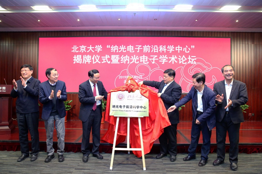 揭牌仪式由北京大学科研部部长张宁主持。揭牌仪式上,雷朝滋代表教育部宣读立项建设批文并与邱水平、李树深、谢心澄、许强、龚旗煌共同为北京大学纳光电子前沿科学中心揭牌。