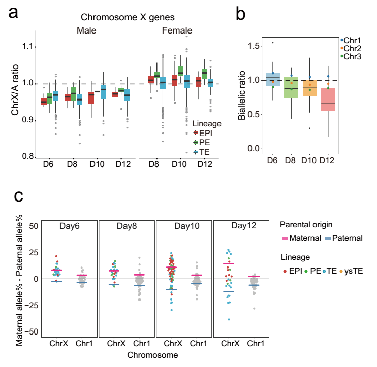 图6 围着床时期胚胎的X染色体剂量动态变化过程