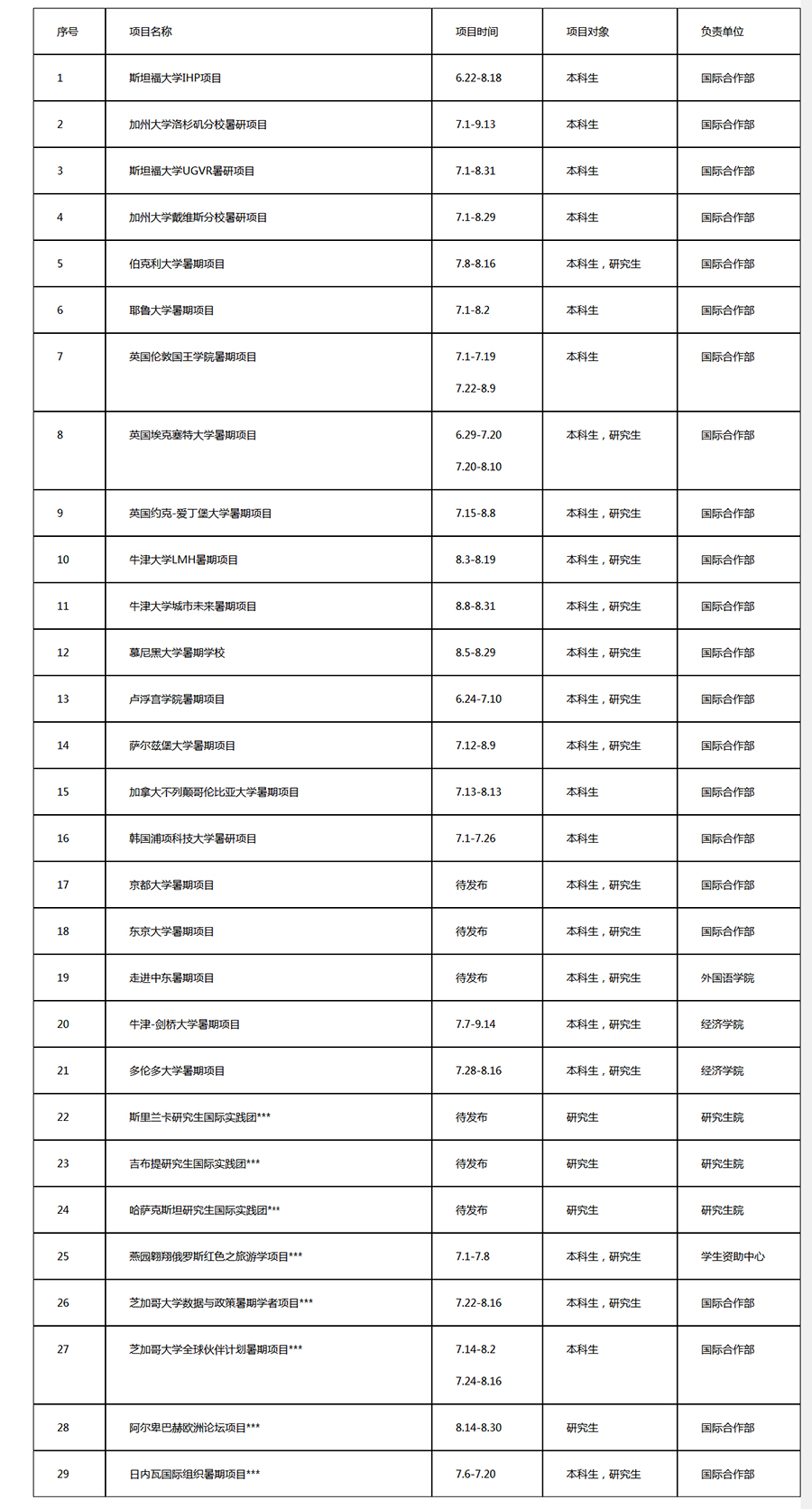 注:***为2019年新推出短期海外学习项目,以上所有项目信息均以负责单位所发布信息为准