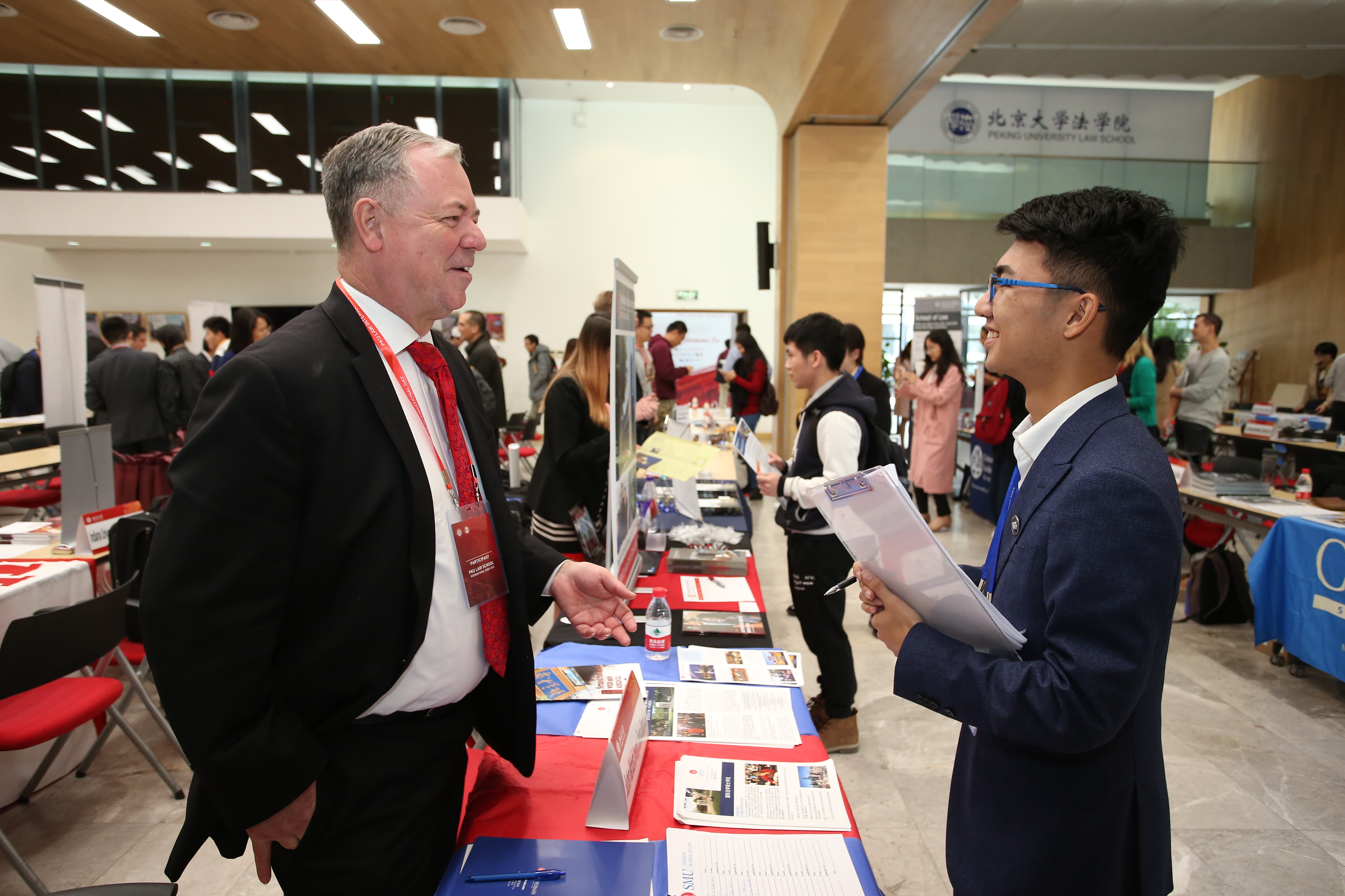 除了正式启动全球教席计划外,北大法学院2018年学生海外学习暨港澳台交流教育展也是本次国际周的重头戏。来自美国宾夕法尼亚大学、日本东京大学等33所海外著名法学院代表、海内外顶尖律所合伙人与学生面对面交流,开展招生宣讲、职业咨询,使学生们能够深入了解心仪学校和项目,获得面对面交流沟通的机会,这对北大法学院学生而言是宝贵的平台,将为他们规划未来学术发展道路和职业生涯起到十分重要的作用。