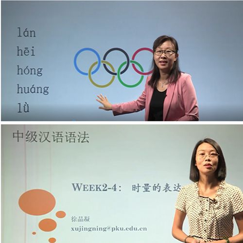 汉语慕课(上图:刘晓雨老师的“基础汉语”,下图:徐晶凝老师的“中级汉语语法”)