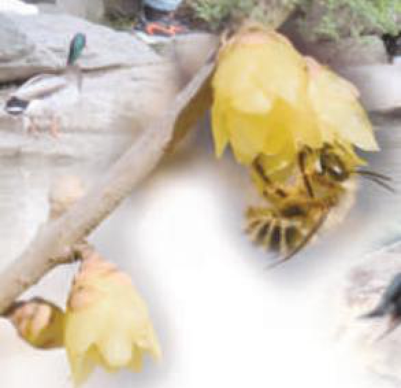桑梓就是其中之一。桑梓是指桑树和梓树。北线走到老生物楼前面,就有梓树,它的典型特征是春季开花,淡黄色、钟状的花朵有深黄色条纹和紫色斑点,非常漂亮。还有荆棘,是两种植物。荆是荆条,很有韧性但没有刺儿,很多同学一听很惊讶,但仔细一想,廉颇负荆请罪背着荆条,怎么可能有刺儿呢?棘是酸枣,棘有刺儿,在未名湖南岸就能看到。还有《诗经》里的“参差荇菜”,校园北边的湖区就有很多荇菜。