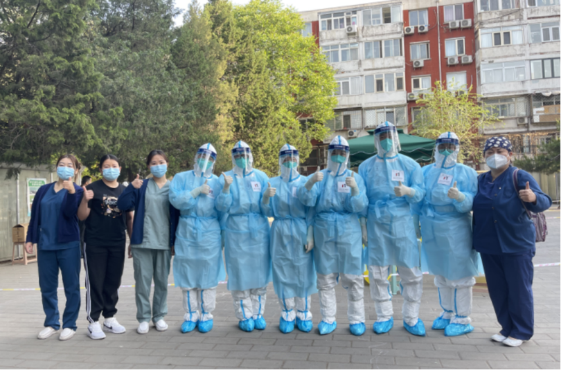 北京大学人民医院组织医务人员参与北京市大规模人群核酸筛查。医护人员奔赴西城区、通州区、朝阳区、海淀区,保质保量完成辖区数10万人口核酸采样工作。