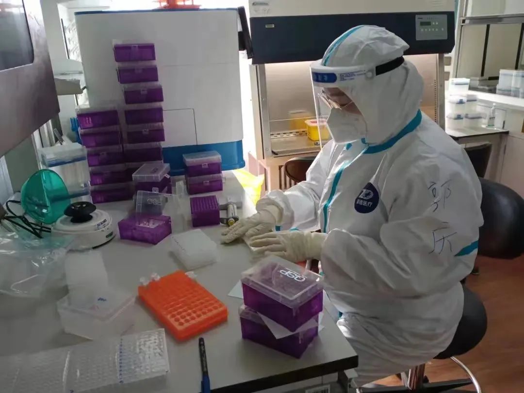 医护人员穿上防护服变身“大白”,准备开始一天的核酸检测工作