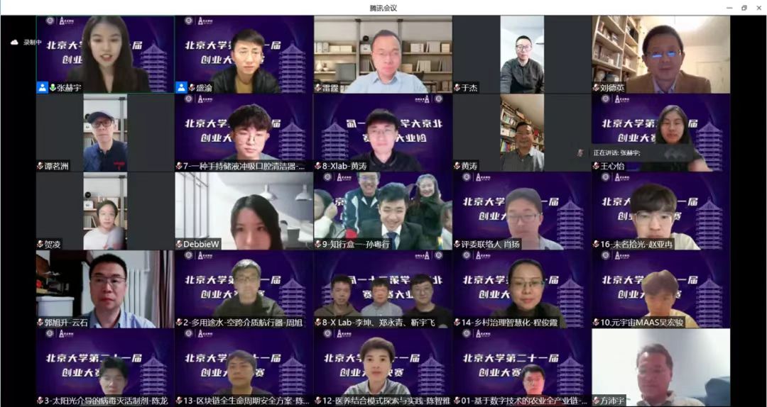校内通过层层选拔,组织北京大学第二十一届创业大赛,最终推荐出项目,图为校内赛线上答辩