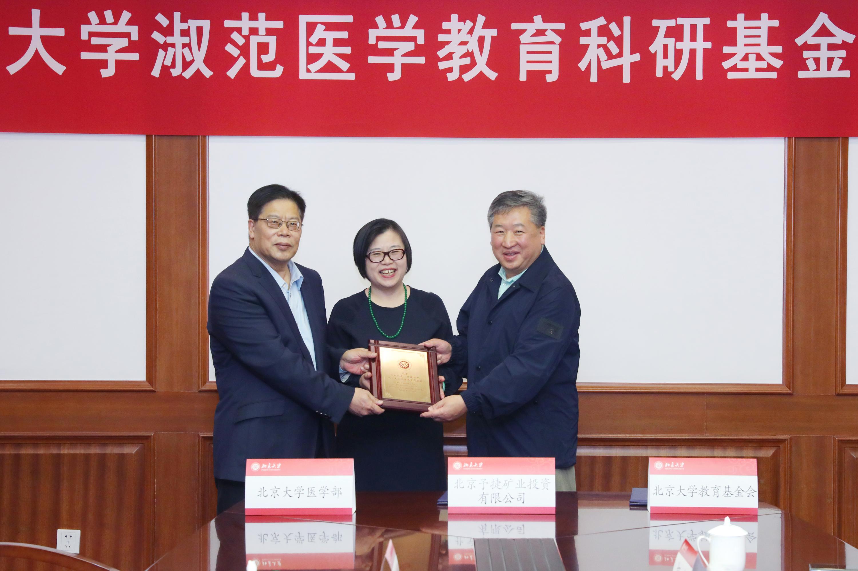12月6日,在北大医学即将迎来110周年庆典之际,北京予捷矿业投资有限公司捐资继续支持北京大学淑范医学教育科研基金,支持北大医学部各项事业的发展建设,同时捐资设立前沿交叉学科研究院淑范医学人文建设项目,支持科学技术与医学史系的学科建设。这是胡毅、许捷校友伉俪在北大百年校庆之际设立淑范教育科研基金之后,再次为母校慷慨捐资。