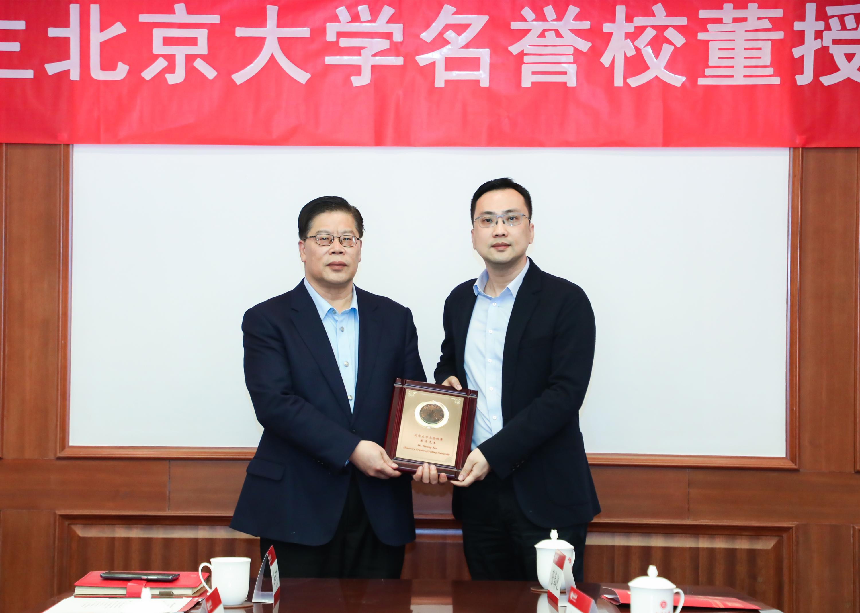 4月19日,黄涛先生北京大学名誉校董授予仪式在北京大学临湖轩举行。黄涛先生及家族和企业长期以来为北京大学的人才培养和学术科研等做出积极贡献,学校决定授予黄涛北京大学名誉校董称号,共同为北大发展和中国高等教育事业贡献更大力量。