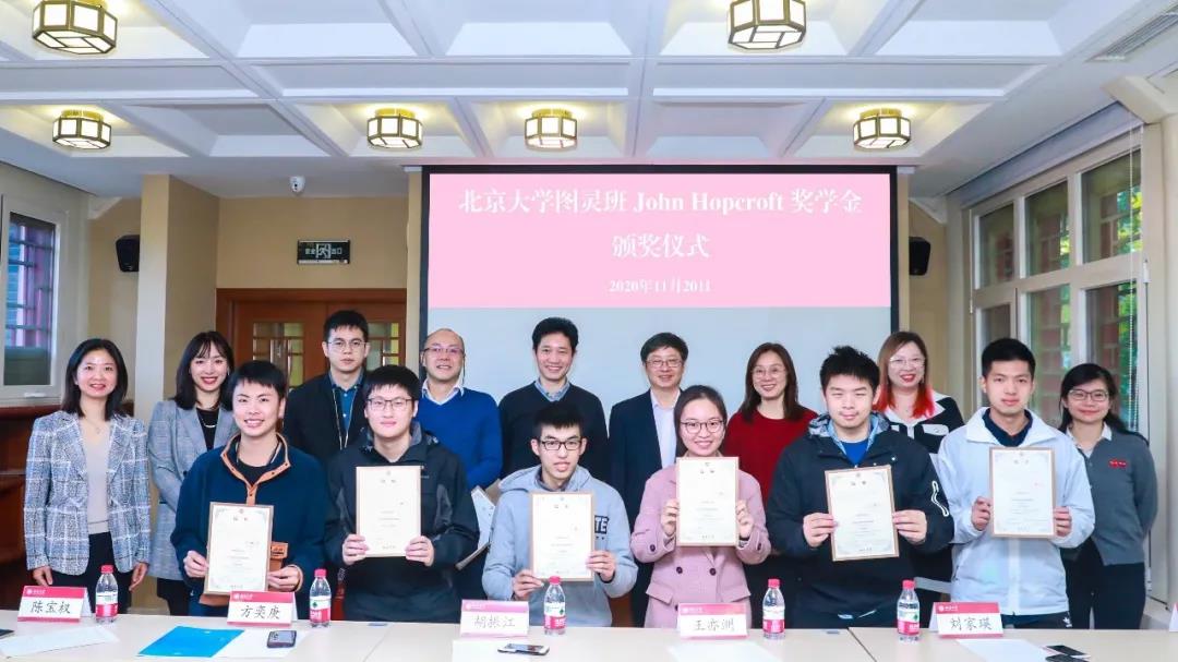 11月20日,首届北京大学图灵班 John Hopcroft 奖学金颁奖仪式举行。北京大学讲席教授、前沿计算研究中心主任 John Hopcroft 教授通过视频参与,信息科学技术学院副院长、图灵计划管理委员会主任胡振江教授,部分获奖学生和捐赠企业代表出席仪式。