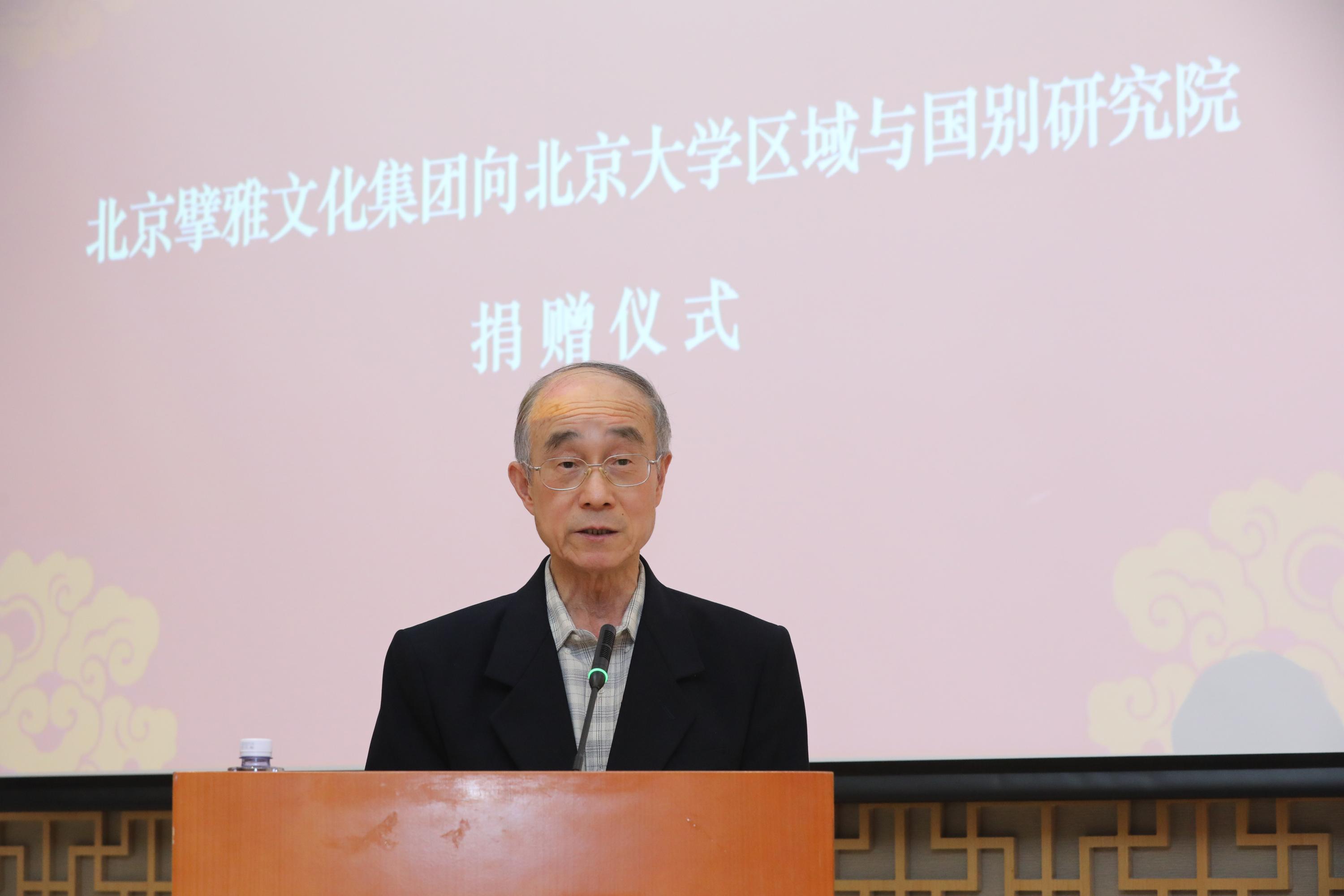擘雅集团董事长、恒源祥集团创始人刘瑞旗,擘雅集团董事、恒源祥集团董事长、总经理陈忠伟,擘雅集团董事、恒源祥集团党委专职副书记顾红蕾,恒源祥北京有限公司副总经理刘晓今,擘雅集团总经理涂业兴,北京大学区域与国别研究院院长钱乘旦、副院长王锁劳,社会科学部副部长王周谊,历史学系教授王新生,教育基金会副秘书长耿姝等出席捐赠仪式。党委组织部部长、外国语学院院长、区域与国别研究院常务副院长宁琦主持仪式。