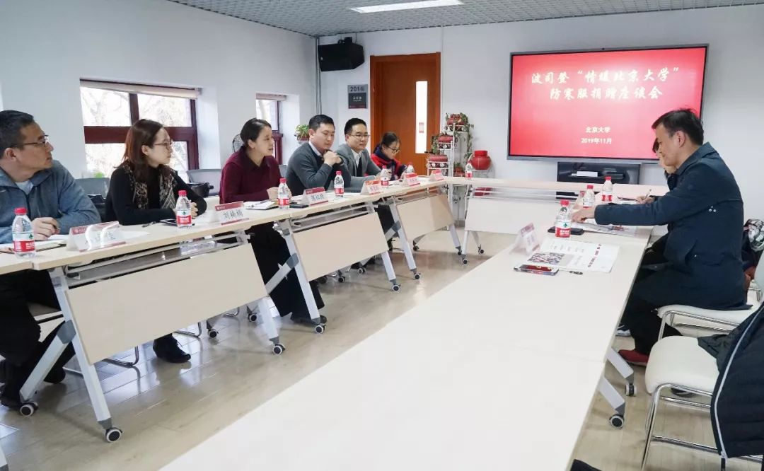 11月27日,波司登“情暖北京大学”防寒服捐赠座谈会在北京大学举行。波司登公益基金会秘书长朱钧、北京大学学生资助中心主任陈征微、副主任林思聪、石运佳、教育基金会项目管理部刘楠楠和部分接受捐赠的19级北大新生代表共同出席。