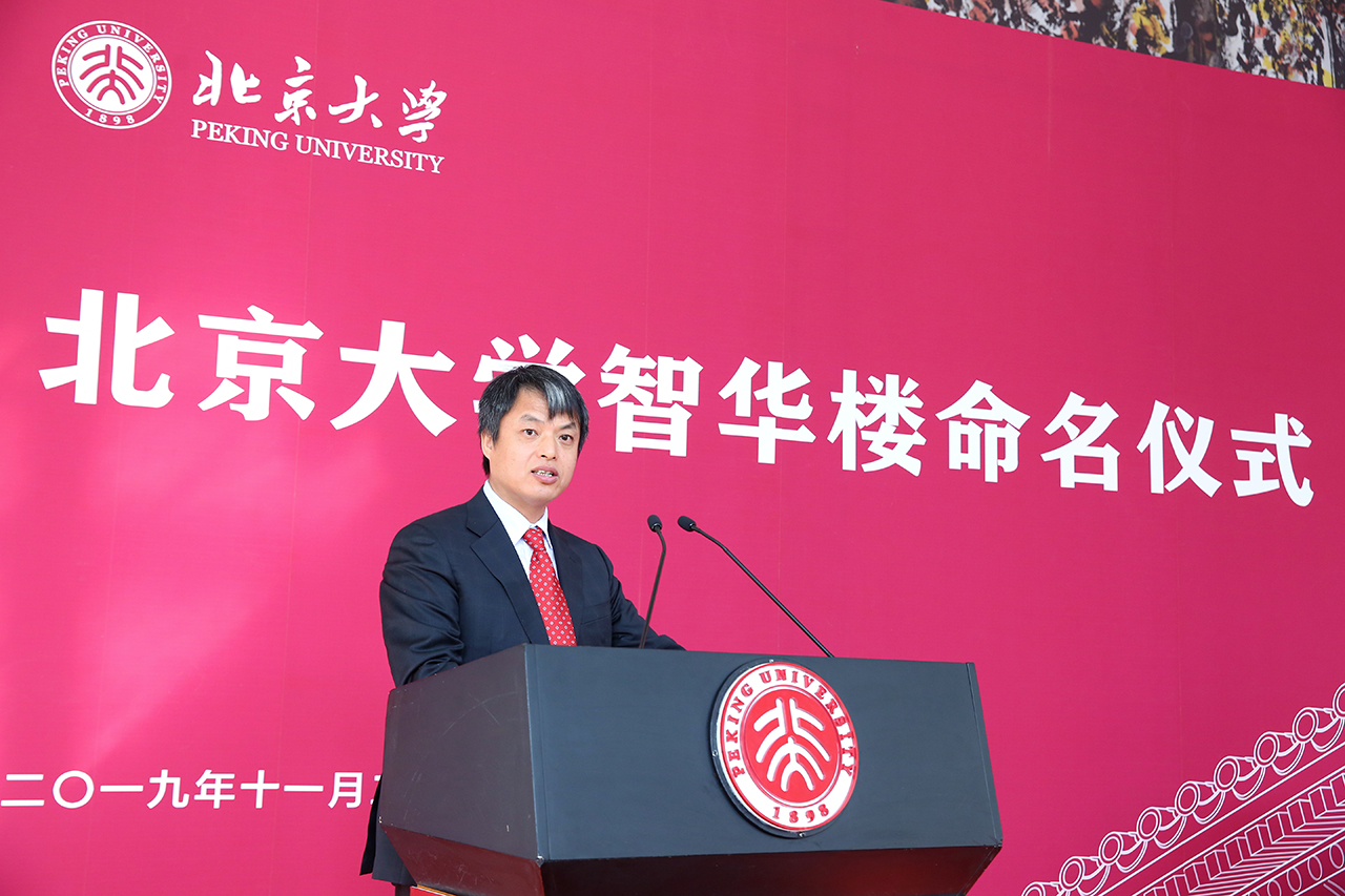 史宇光教授代表北京大学数学科学学院对林高演先生慷慨资助和学校对学院多年来的大力支持表示衷心感谢。他介绍了北大数学的发展历程和现状,并表示,林先生的善举为北大数学的未来发展提供了新的强劲动力。在改造后的智华楼内,数院师生将继续潜心治学、勤奋耕耘,为智慧中华的事业做出北大人应有的努力和贡献;而智华楼也必将成为北大人知识分享、思想交流、思维碰撞、理论创新的新平台,助力北大乃至中国高等教育事业不断前进,取得更大的辉煌。