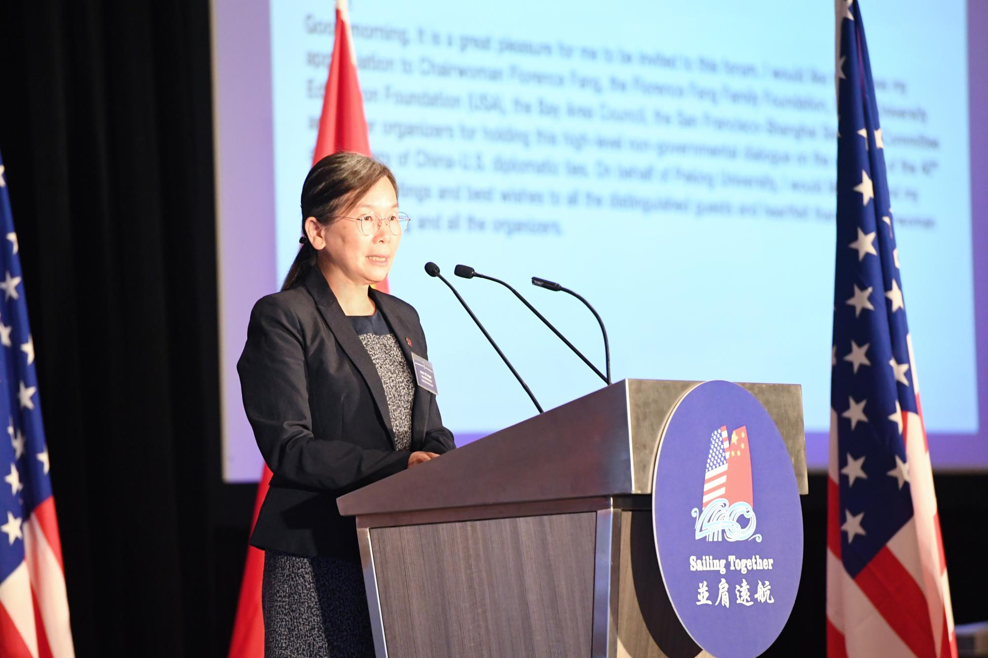 叶静漪代表北京大学向峰会的召开表示祝贺。她指出,北大建校120余年积极参与世界大学的交流合作和人类文明的交流互鉴,在中美人文、科技、教育交流合作中发挥了桥头堡的作用。她表示,北大期待与美国的优秀大学和社会各界有识之士携手,进一步加强学术对话和人员交流,促进中美两国人民、特别是青年人的互相认识、理解和信任,减少误解和分歧,积极构建兼容并包的多元文化环境,推动中美关系健康发展,在新的时代乘风破浪、并肩远航。