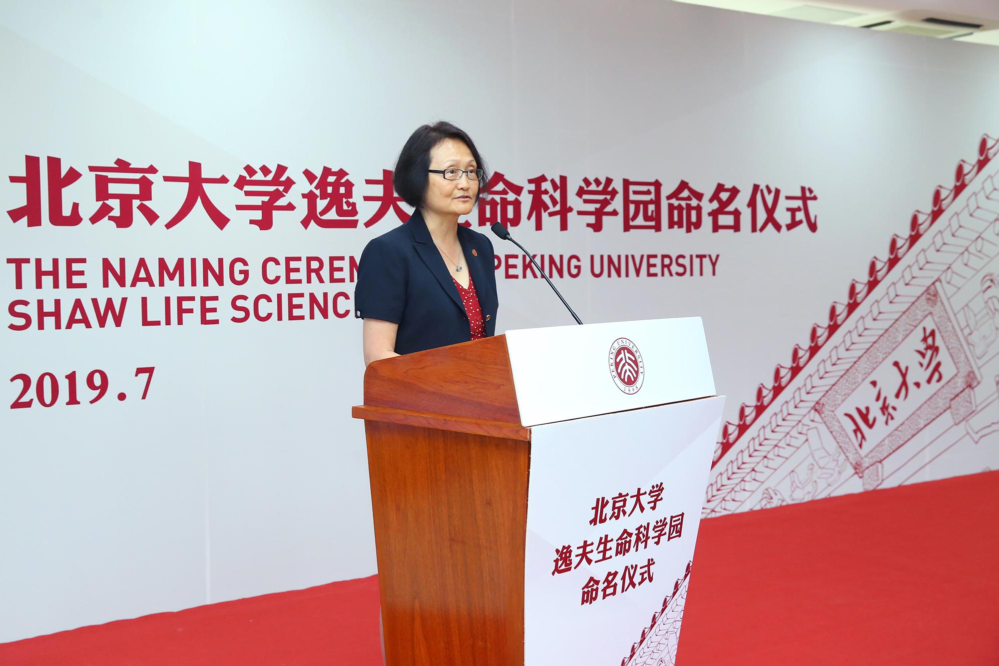 王博代表学校感谢邵氏基金会对北大的信任与厚爱、对生命科学的持续支持,也感谢教育部多年来给予北大的认可与支持。王博指出,作为新的学术园地,逸夫生命科学园是北大规模最大、最前沿的生命科学教学研究基地,未来将创造出最优秀的科研成果。王博提到,邵逸夫先生曾说过,人类的伟大在于追求、研究、传授学问、造福人类。他表示,这也是北大的学术理想与使命,北大将建设好包括生命科学在内的各类学科,继续关心人类所面临的重大问题,为实现中华民族伟大复兴努力前行、贡献力量。