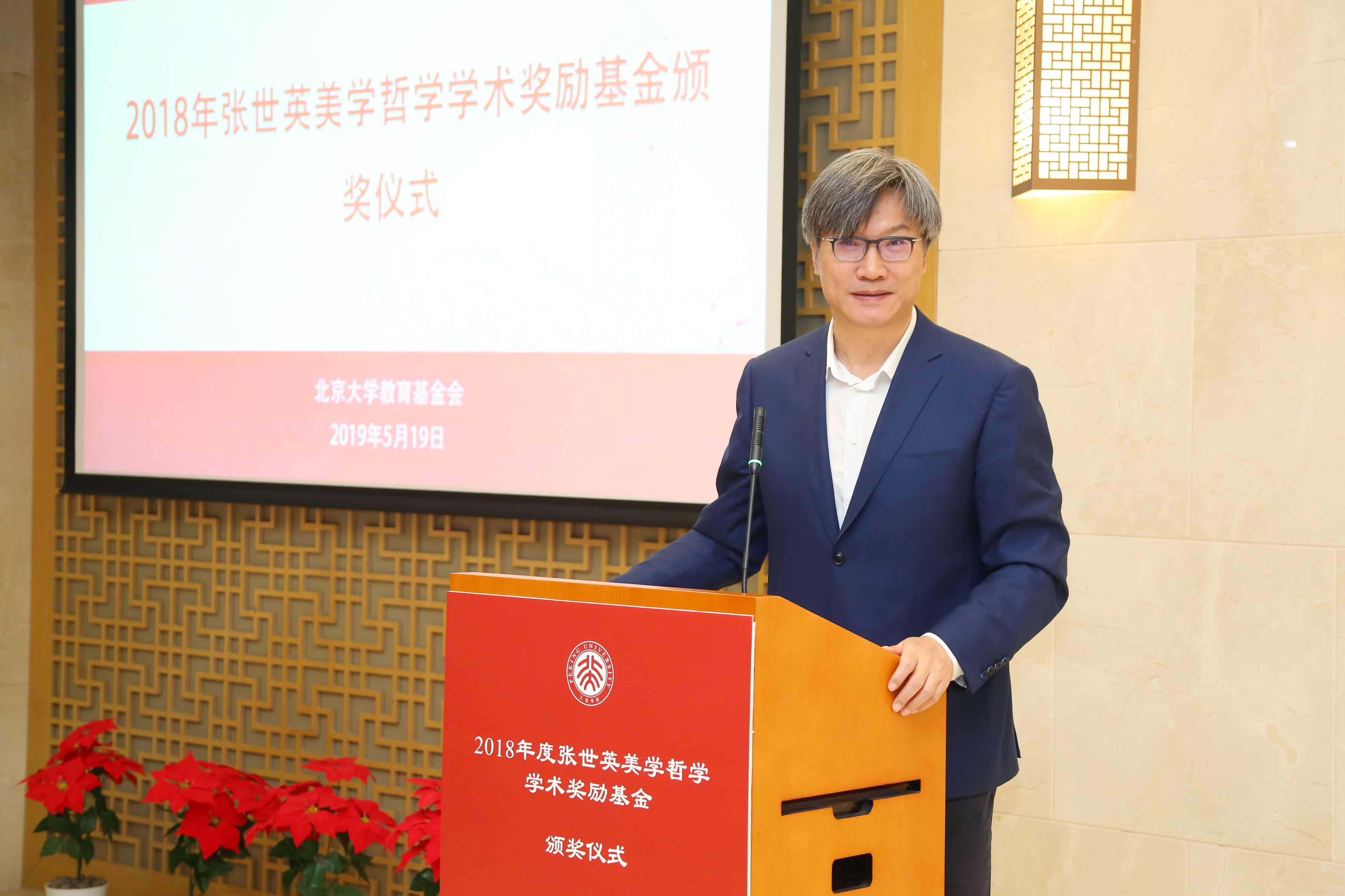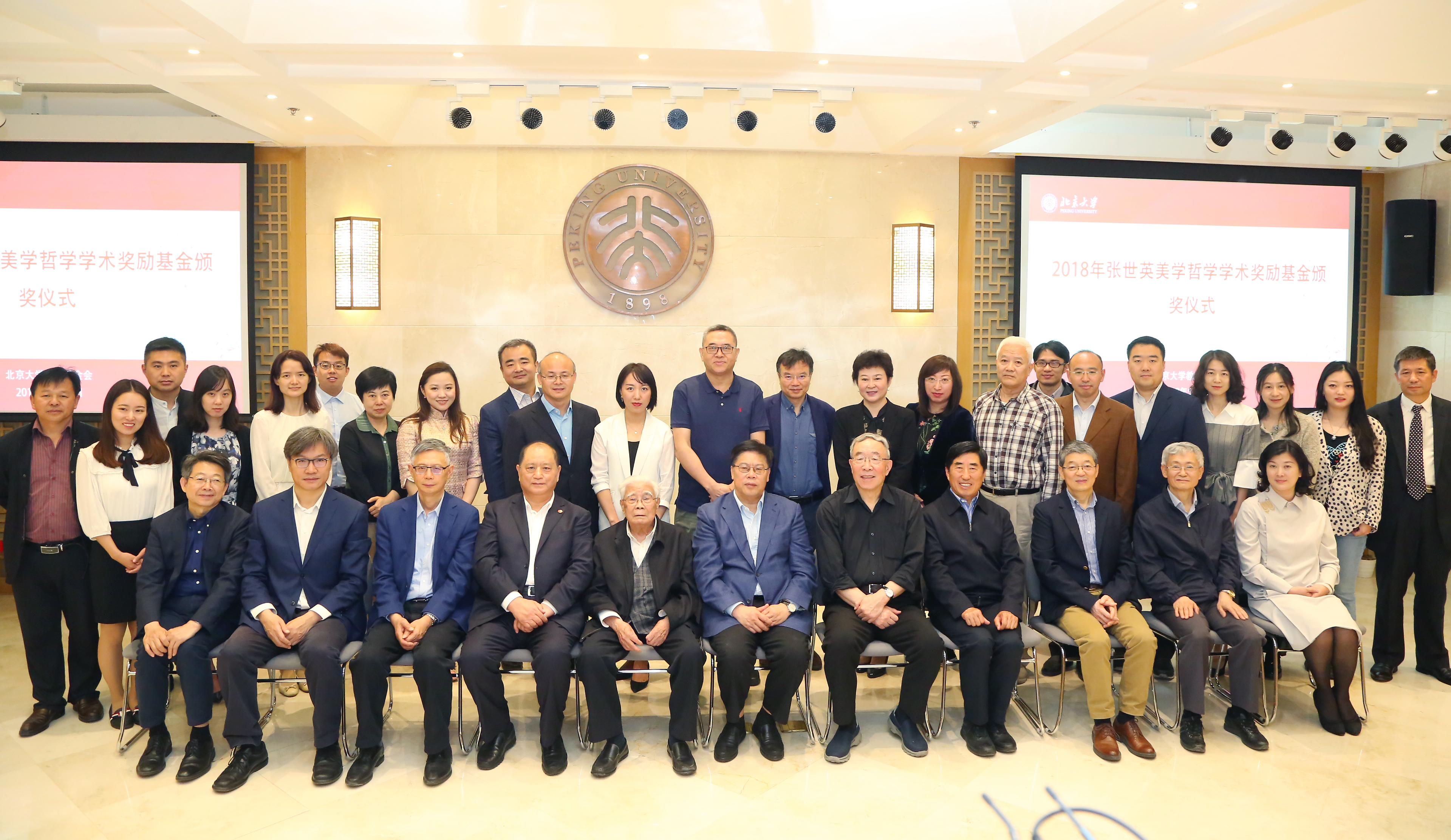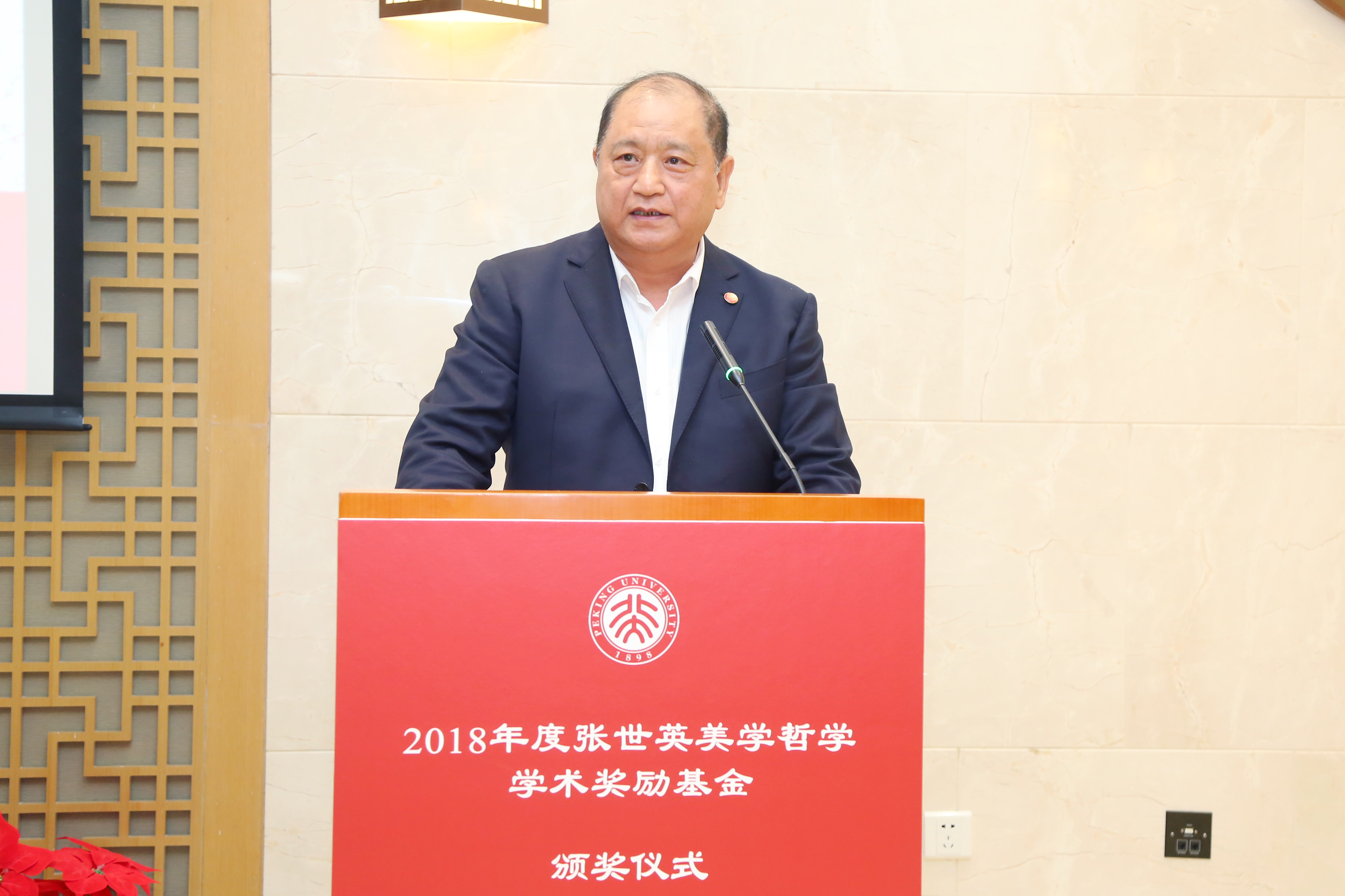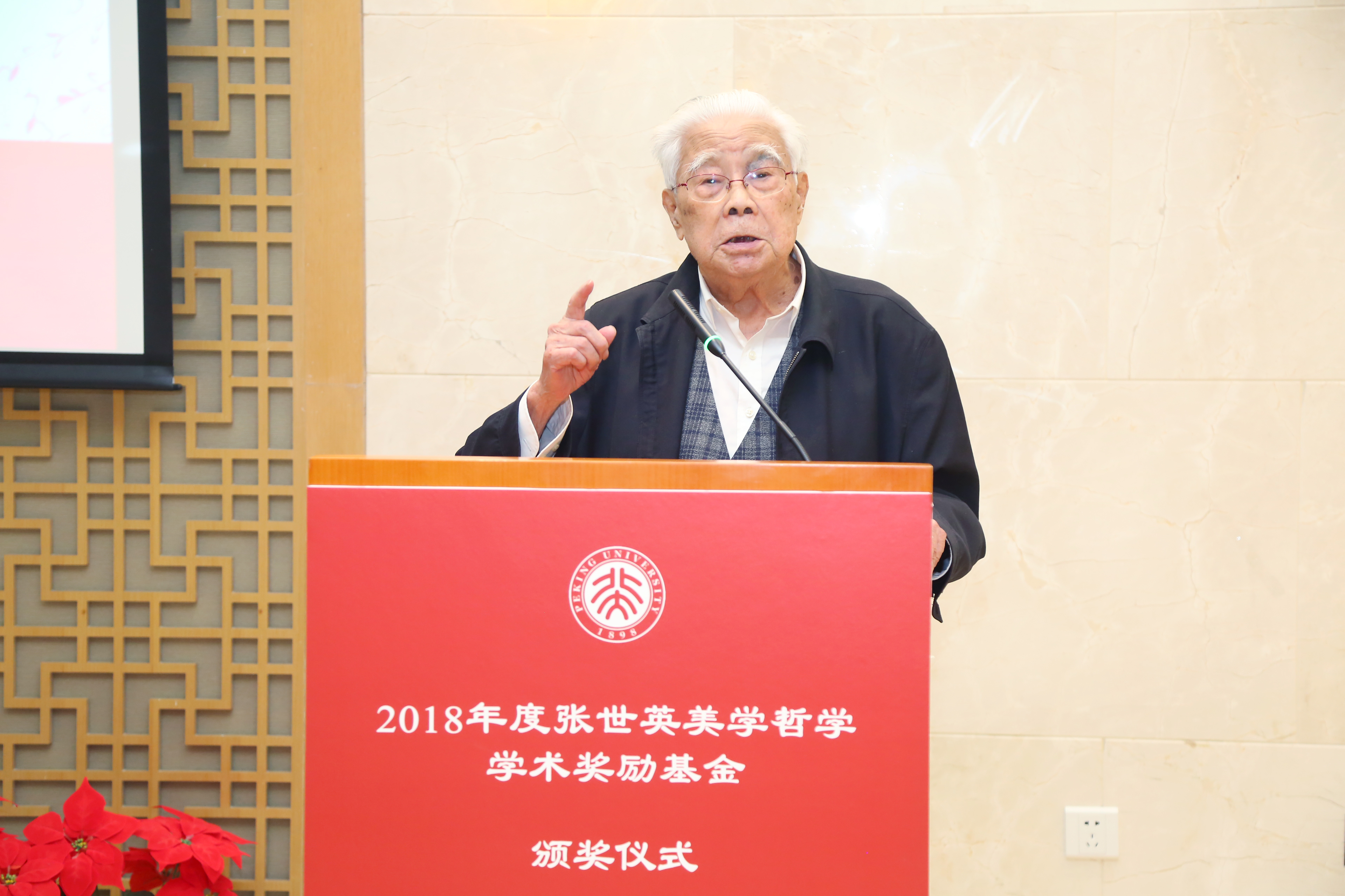 北大哲学系教授张世英先生,中国泛海公益基金会秘书长李建昌,北京大学党委书记、教育基金会理事长邱水平,副校长、教育基金会副理事长王博,哲学社会科学资深教授叶朗,美学与美育研究中心主任朱良志,教育基金会秘书长李宇宁和师生代表等共同出席颁奖仪式。北京大学哲学系主任仰海峰主持仪式。