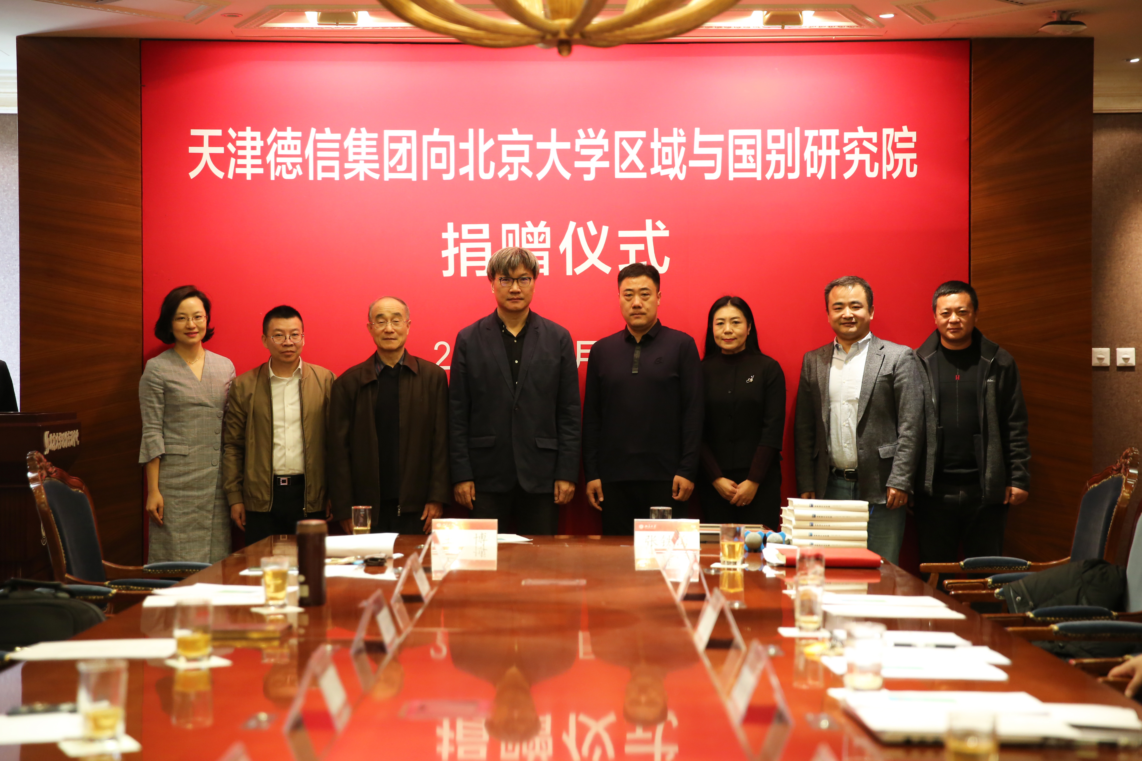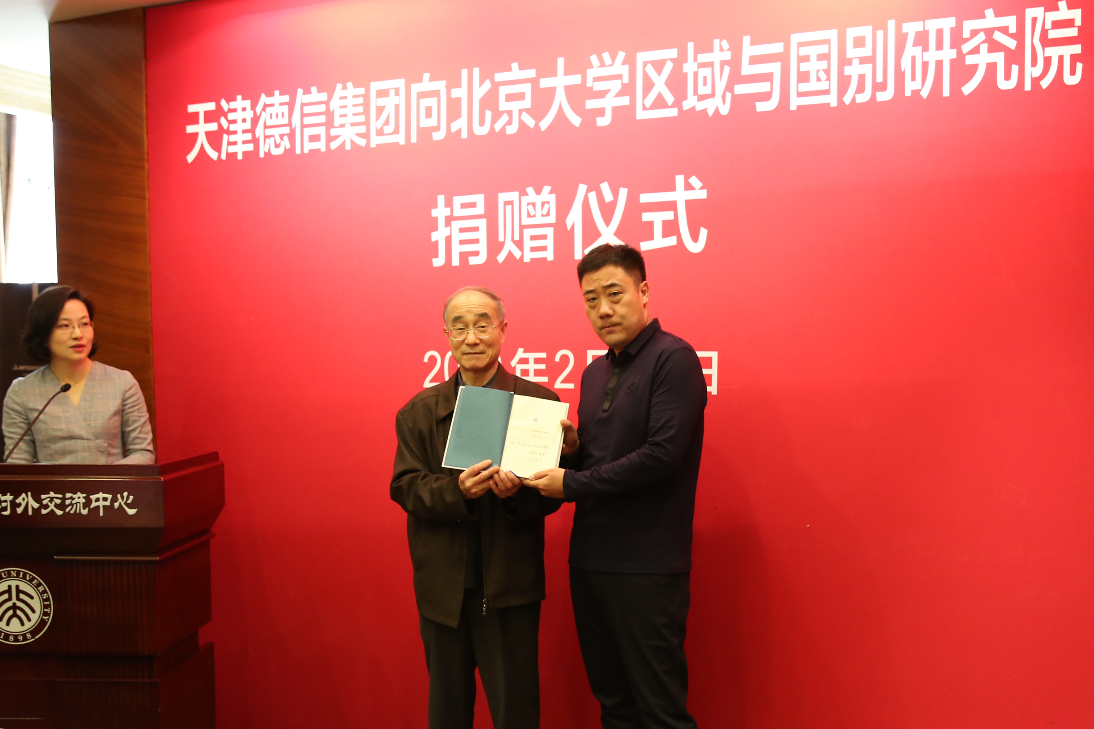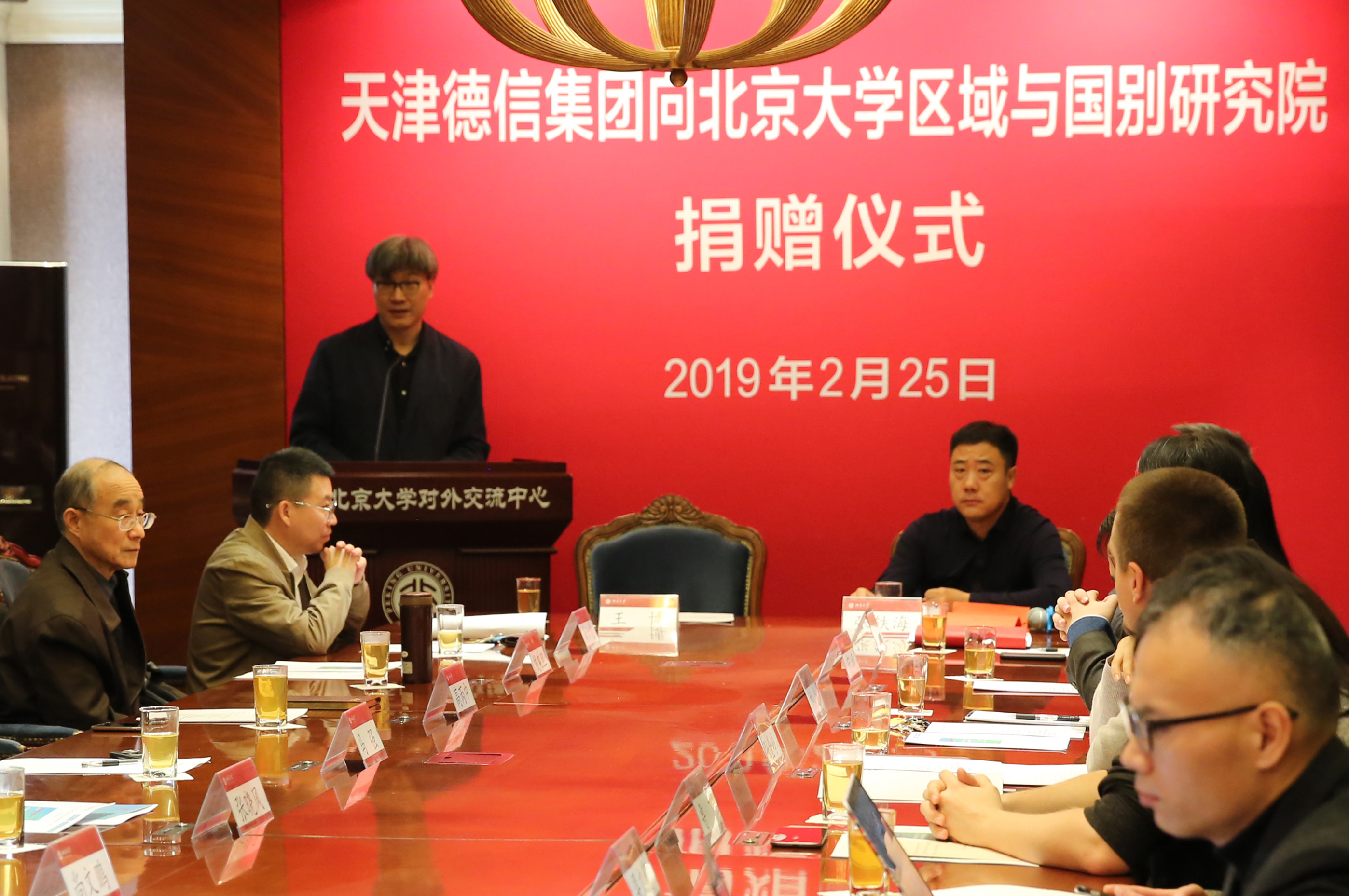 2月25日,天津德信集团有限公司向北京大学区域与国别研究院捐赠仪式在英杰交流中心星光厅举行。天津德信集团董事长张铁海,北京大学副校长、教育基金会副理事长王博,区域与国别研究院院长钱乘旦、常务副院长宁琦,社会科学部部长龚六堂,教育基金会秘书长李宇宁等共同出席。