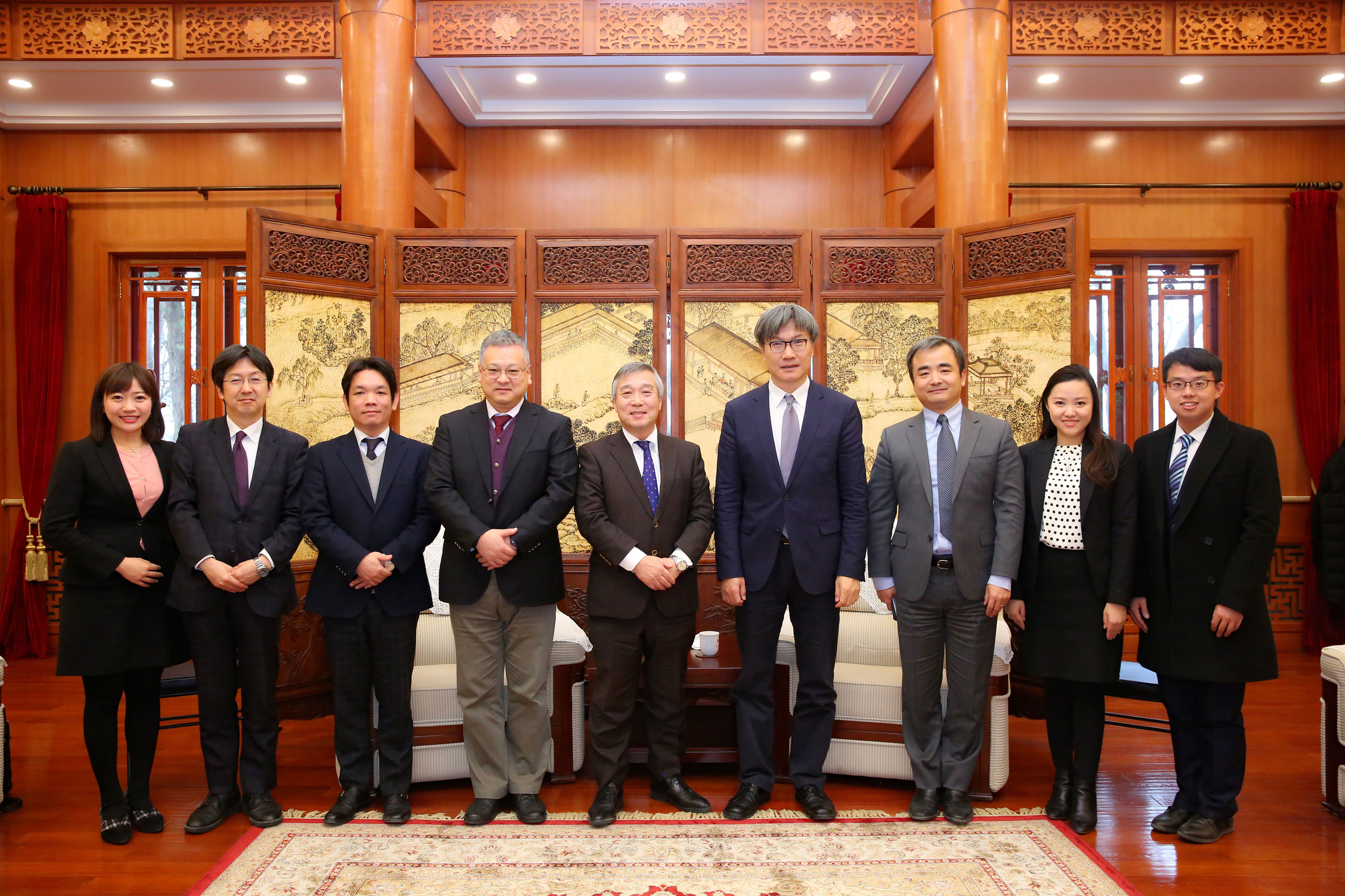 仪式前,北京大学副校长、教育基金会副理事长王博在临湖轩中厅会见了横尾博先生一行。他代表学校感谢永旺集团一直以来对北京大学人才培养的全方位支持。