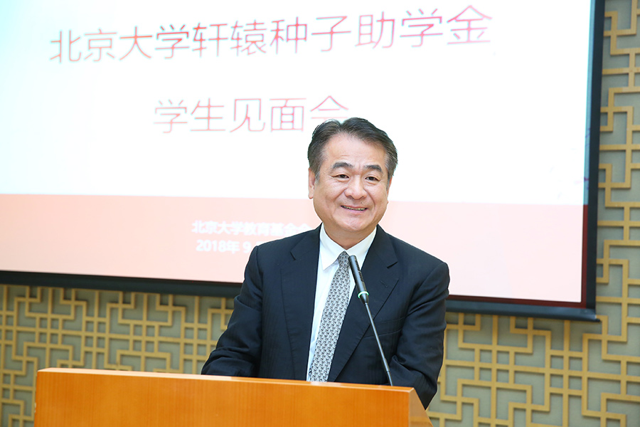 徐雅民教授满怀深情地回忆了自己在北大求学时的经历,作为受到政府和社会资助的贫困生,他深切感受到爱心传递的重要性。徐教授向同学们提出“严于修德”和“勤于治学”两点要求,希望他们能成长为有责任、有担当、有益于国家和民族的北大人。