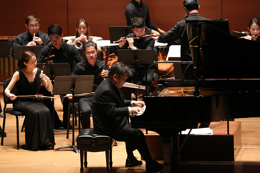 北京大学学生民乐团与旅美著名钢琴家殷承宗合奏《黄河》