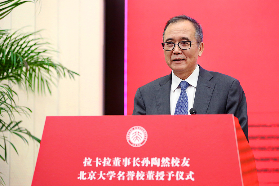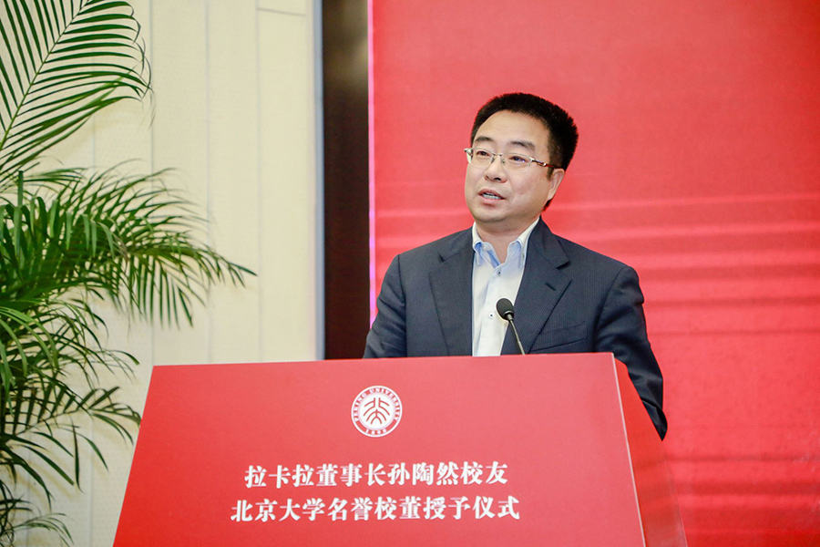 孙陶然校友表示,在北大四年的学习生活为自己带来了四笔受益终生的财富,即自信、圈子、学习能力和眼界,正是这些成就了今天的自己。他认为在“穷则独善其身,达则兼济天下”的理念之下,应该为母校、为社会做出贡献。孙陶然校友对于获得北京大学名誉校董这个新的身份感到非常荣幸,他认为这是对他的一份激励,更是对已走出北大和正在北大学习的全体北大人的一份激励,是希望大家能够更有作为,更多地关注和回馈母校。孙陶然校友表示,这个新的身份将是他未来心向母校和为母校做出更多贡献的开始。