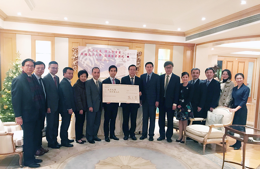 为支持北京大学创建世界一流大学,助力中国教育事业的蓬勃发展,多位香港企业家和友人向北京大学捐资,全面支持北大的发展建设。其中,嘉里集团主席郭鹤年先生慷慨捐资支持北京大学餐饮中心的建设;香港“北大之友”创会会董、陈国钜名誉校董和陈伍玉华女士之子陈上智校友捐资设立北京大学明德教育基金,支持北京大学人才培养;香港百贤教育基金会名誉主席、北京大学名誉校董曹其镛先生捐资支持燕京学堂等开展交流活动,增进东亚青年交流;香港联泰集团主席陈守仁先生捐资设立“北京大学医学部陈守仁教育基金”,支持中医药领域的研究;陈明、刘卿伉俪后人,北京大学名誉校董陈定海、陈夏萍捐资支持北京大学的发展建设。