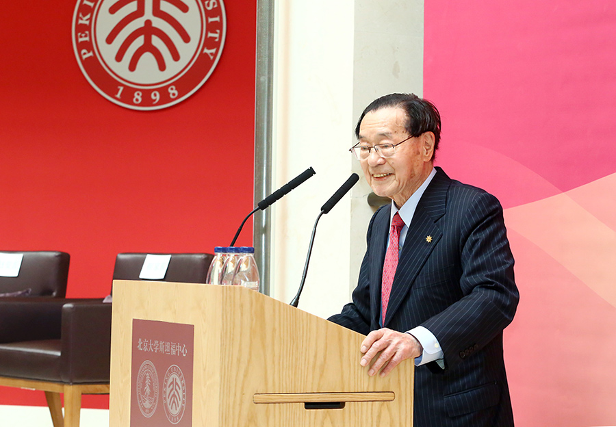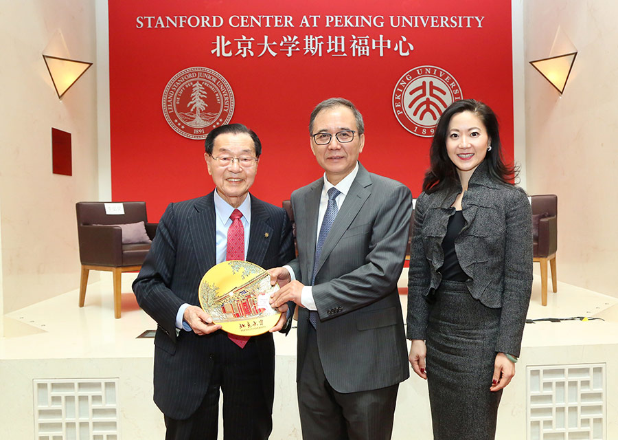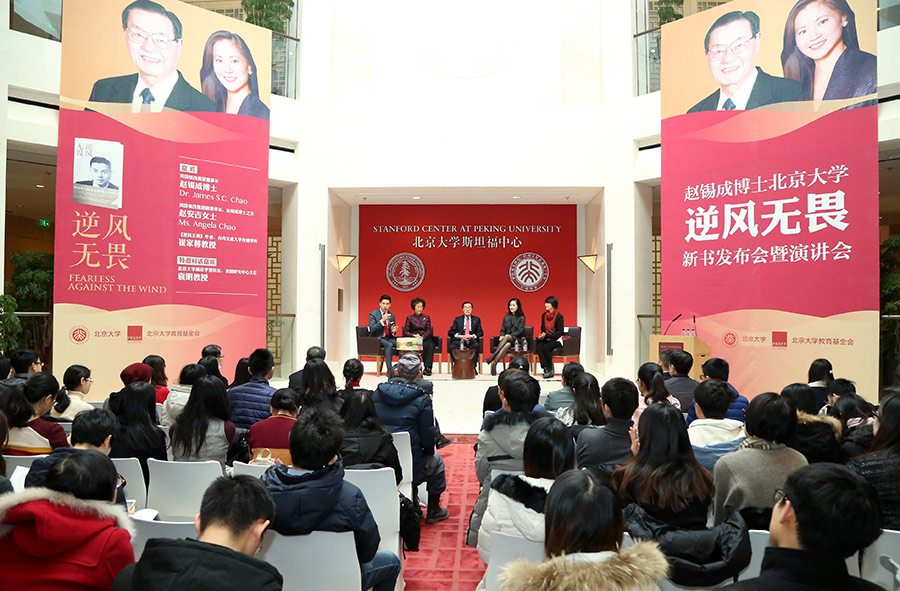 12月14日,冬日的北大斯坦福中心迎来了一位亲和睿智的老人。著名旅美华人船王、福茂集团董事长赵锡成博士携小女儿、福茂集团副董事长赵安吉女士亲临北京大学,举办个人传记《逆风无畏》新书发布会并发表演讲,在与北大师生的对话互动中,分享了他历经世纪洗礼的人生智慧和逐梦故事。《逆风无畏》作者、台湾交通大学崔家蓉教授,北京大学校长林建华教授,燕京学堂院长袁明教授,教育基金会李宇宁秘书长,国际合作部夏红卫部长和创新创业机构筹备组组长陈东敏教授出席此次发布会。活动由燕京学堂2016级美国学生牛弘昊主持。