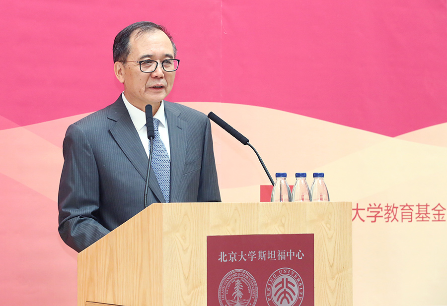 林建华校长诚挚欢迎赵锡成博士和赵安吉女士再次回到北大,与北大师生一起见证这沉甸甸的、记录着九十载人生经历的传记《逆风无畏》在大陆发行。林建华校长回顾了与赵锡成博士的两次会面,并表示,在交流的过程中深深感觉到赵博士是一位非常睿智、亲和、具有远见卓识和极富社会责任感的杰出企业家。更重要的是,赵锡成博士始终坚持以中华文化为根,他和他的家庭始终坚持搭建中美交流的桥梁,对促进两国文化和价值观的沟通和互信发挥了重要作用。林建华校长希望北京大学在扎根中国大地建设世界一流大学的进程中,也能够坚持中国优秀传统文化的智慧与经验,与时俱进,在交流与融合中追求卓越。他希望同学们在此次交流中,能从赵锡成博士的人生体悟和创业经历中收获智慧和经验,体会他对世界的深沉关怀和思考,以守正、包容、奉献、超越的精神,为国家和民族的发展做出北大人的突出贡献。