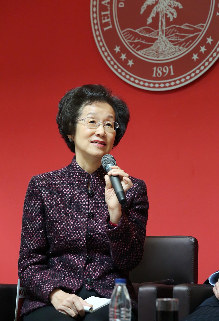 赵锡成博士的小女儿、福茂集团副董事长赵安吉女士为我们讲述了她的母亲赵朱木兰所带给她们的中国式优雅,母亲永远举止恰如其分,她用智慧、文化、自尊、自信影响着孩子们。虽然成长在美国,但父母不断跟他们强调做人之道,站在别人的立场考虑问题,引导他们树立正确的人生观与价值观。燕京学堂美国留学生牛弘昊为大家展示并阐述了在学堂举办的第二届全球青年中国论坛上,同学们如何创造性地用中国的语言和文字为论坛设计标识,并以Xinnovation: Identity of Innovation in China为主题,为来自全世界的青年精英提供探讨全球视野下中国的创新价值和未来发展以及如何共同应对新时期变革与机遇的平台。