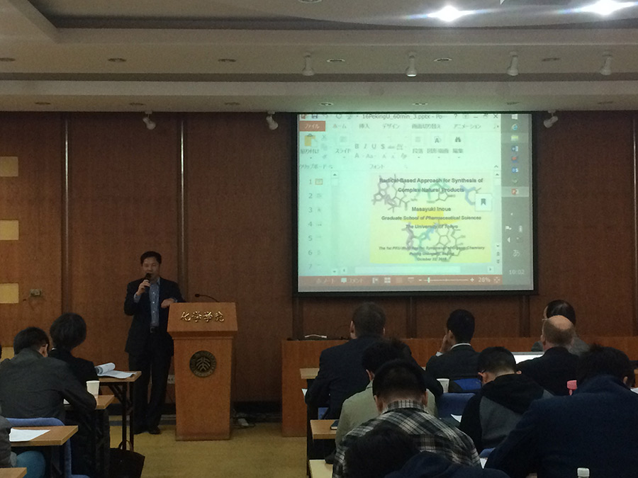 10月21-23日,首届“北京大学药明康德有机化学讲座”在化学与分子工程学院成功举办。会议邀请了中国科学院上海有机化学研究所唐勇院士、海德堡大学A. Stephen K. Hashmi教授、俄勒冈大学Michael M. Haley教授、慕尼黑大学Dirk Trauner教授和东京大学Masayuki Inoue教授等五位国际著名教授前来讲学。北京大学化学学院席振峰院士等多位教授以及药明康德新药开发公司国内新药研发服务副总裁黎健博士和化学医药部执行理事钱文远博士等共同参加研讨会。黎健博士在开幕式上致欢迎词。本次学术研讨会吸引了北京大学化学学院、北京大学药学院及其他兄弟院校100余名教授、研究员、博士后和研究生的积极参与。