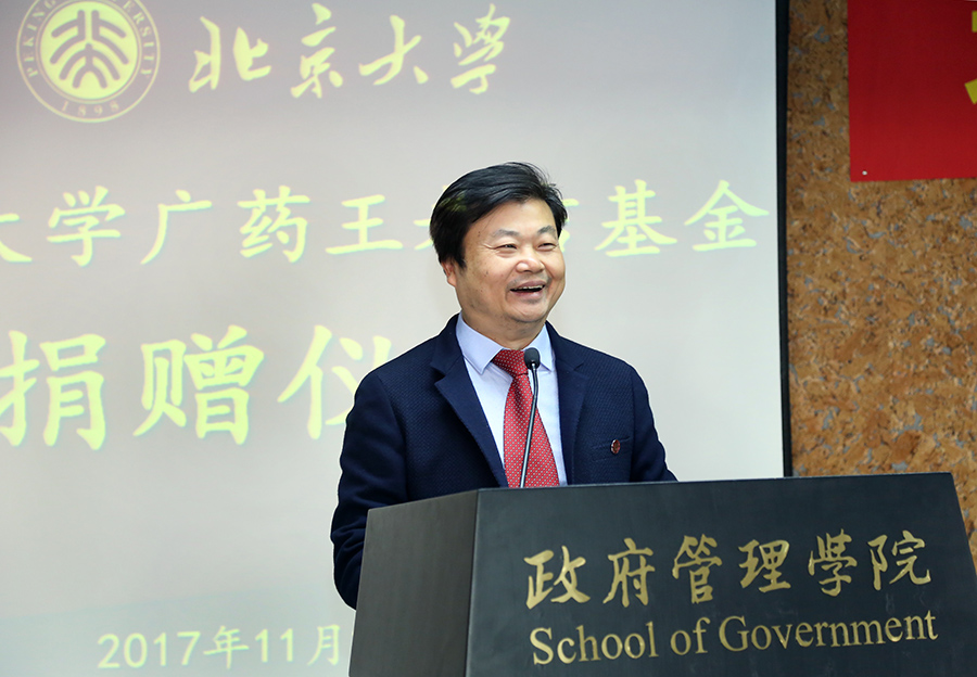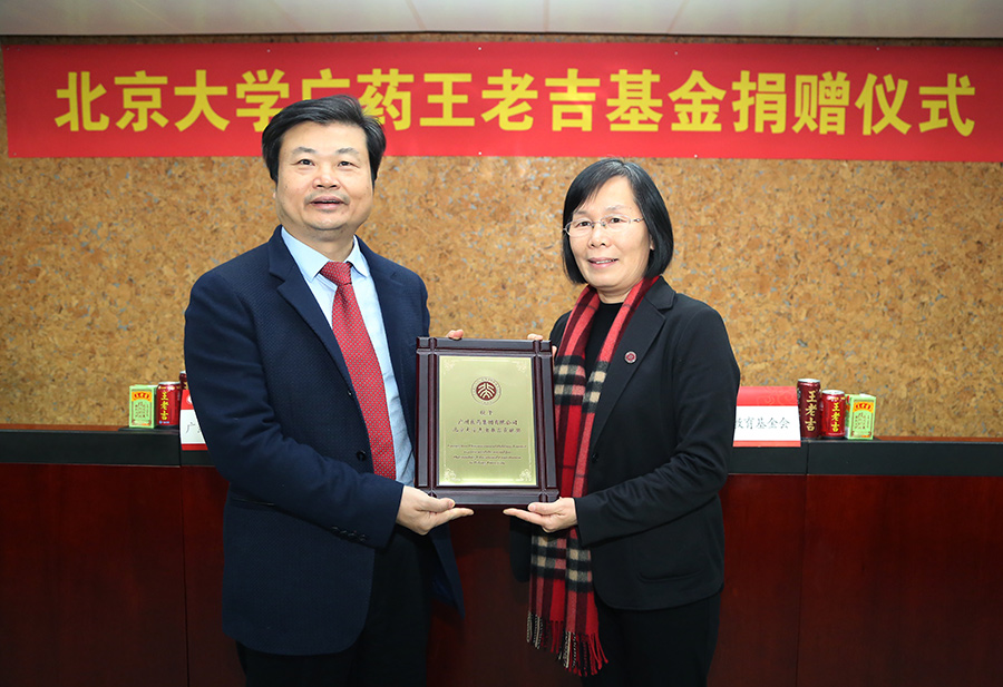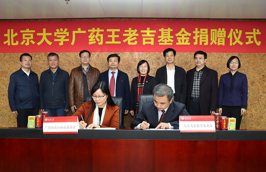 11月20日,北京大学广药王老吉基金捐赠仪式在北京大学政府管理学院举行。广州医药集团有限公司宣布通过广东省广药白云山公益基金会向北大捐资,设立北京大学广药王老吉基金,支持学生奖励、海外交流和校园文化,促进北大的人才培养事业,推动北大校园文化建设,支持北大创建世界一流大学。