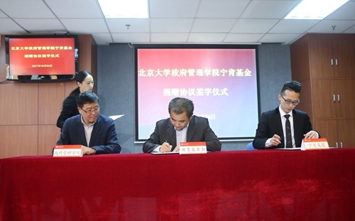 10月24日,北京大学政府管理学院宁肯基金捐赠仪式在北京大学廖凯原楼207室举行。安徽宁肯控股有限公司向北京大学政府管理学院捐资设立北京大学政府管理学院宁肯基金,用于支持政府管理学院建设、人才培养与科研发展,为北京大学120周年校庆献礼。
