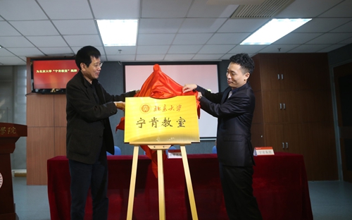 俞可平、张向东共同为北京大学“宁肯教室”揭牌