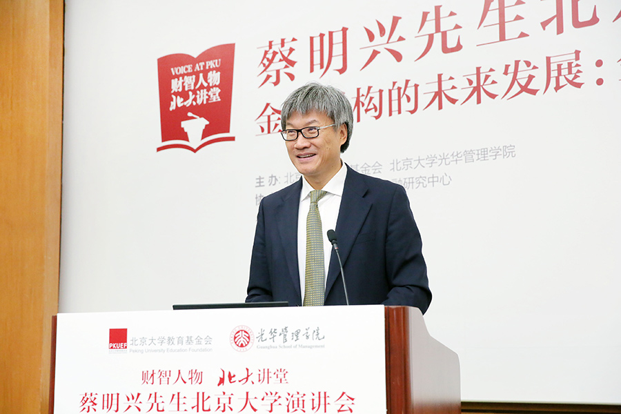 9月26日,台湾富邦金控董事长蔡明兴先生一行访问北京大学,并在光华管理学院举行了“财智人物北大讲堂”演讲会。蔡明兴先生用生动的演讲与北大师生分享了富邦金控创业、发展壮大和回馈社会的精彩历程。