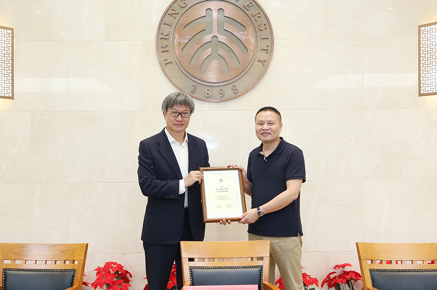 王博副校长向重庆泛语科技有限公司授予北京大学教育贡献奖