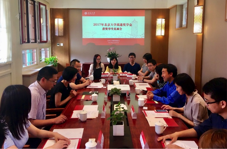 6月8日,2017年北京大学高通奖学金获奖学生见面会在北京大学教育基金会举行。高通公司副总裁范明熙博士,资深企业社会责任代表曹楠女士,资深工程师兼经理张煜博士,北京大学校长助理、教育基金会秘书长邓娅老师,北京大学信息科学技术学院副院长蒋云老师,副书记熊校良老师,学生工作办公室主任李子奇老师和高通奖学金获奖学生代表共同出席了见面会。教育基金会拓展部部长赵琳老师主持会议。