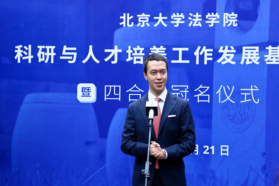 10月21日,“北京大学法学院科研与人才培养工作发展基金”捐资暨法学院四合院冠名仪式在北京大学蒋家胡同四合院举行。北京国双科技有限公司此次慷慨捐资,支持北京大学法学院科研和人才培养事业,助力大数据法律研究和国家智库的深入发展,以促进法治学术研究繁荣进步、推动法治实践全面深化。