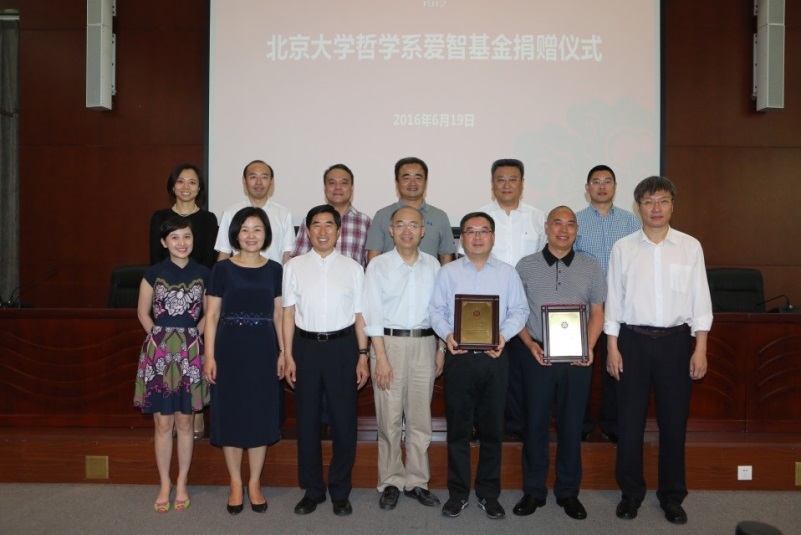6月19日,北京大学哲学系爱智基金捐赠仪式在李兆基人文学苑举行。北京市海淀区政协主席、哲学系系友会会长彭兴业,北京信息科技大学党委书记、哲学系系友会常务副会长王传亮,银华基金管理有限公司总经理王立新系友,银杏资本管理有限公司董事长周广文系友,北京爱智投资管理有限公司董事长白布和系友,和北京大学常务副校长吴志攀,校长助理、教育基金会秘书长邓娅,校长助理、社科部部长、哲学系主任王博,校友工作办公室主任李宇宁和部分师生代表出席仪式。捐赠仪式由北京大学哲学系党委书记仰海峰主持。