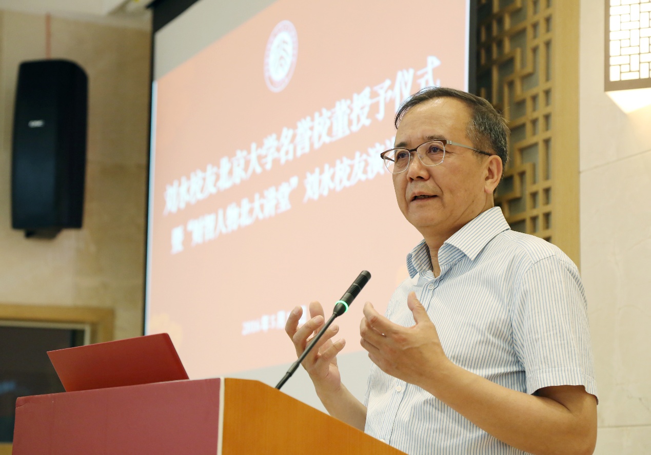 林建华校长表示,一所大学是不是一流,很重要的就是看两个方面,一是学生培养的成果,也就是校友的成长状况,二是教师的发展成就。林校长简要回顾了近一年多以来屠呦呦、于敏、曹文轩、俞孔坚、李零等一批校友和教师取得的成就和荣誉,并强调,一代代北大人从校园走向世界,在各个领域建功立业,铸就了北京大学崇高的社会声望。刘水校友就是其中杰出且年轻的代表。