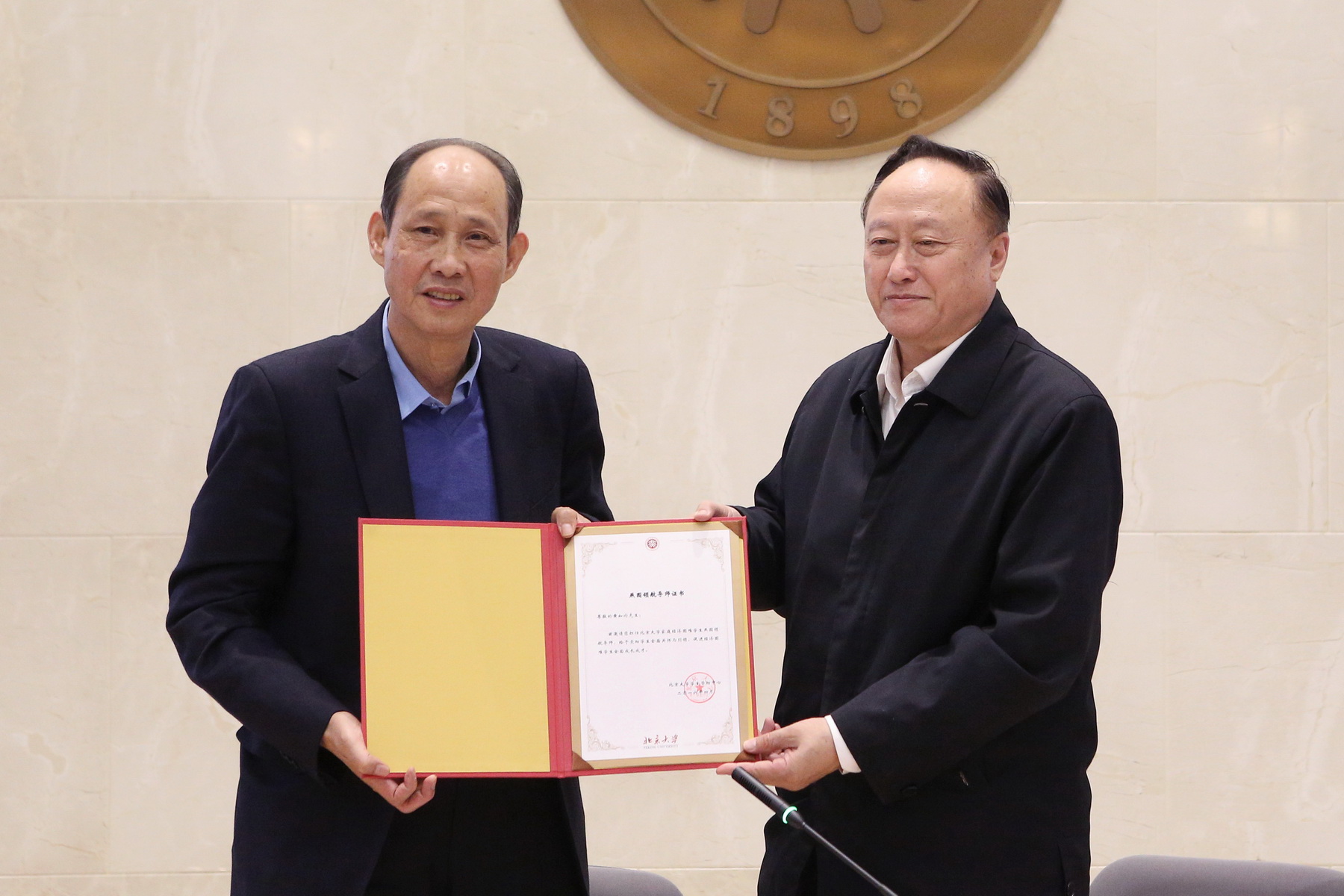 朱书记代表学校聘请黄如论先生、黄涛先生担任“燕园领航”导师