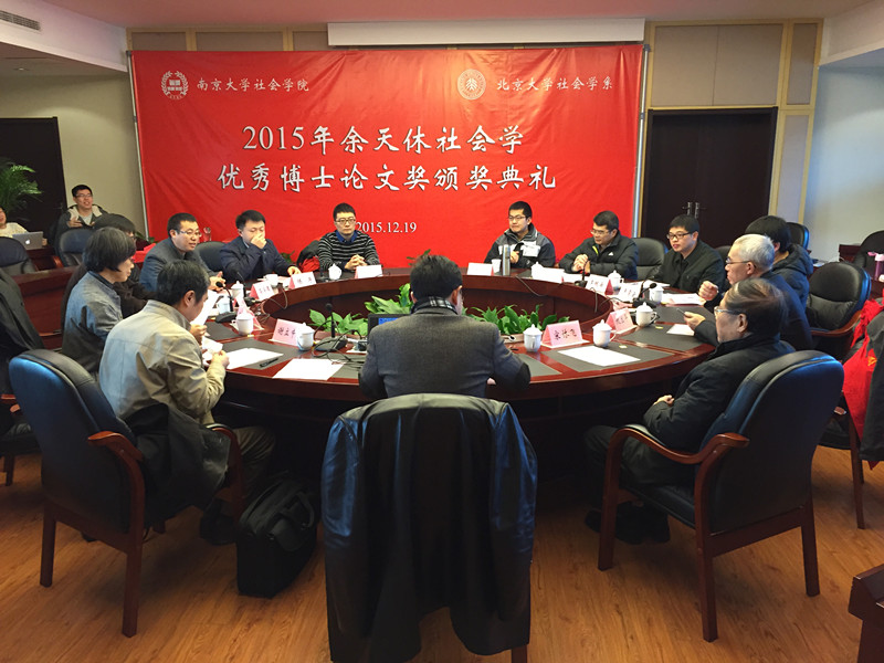 12月19日,由北京大学余天休社会学基金资助的第四届 “余天休社会学优秀博士论文奖”颁奖典礼在南京大学举办,北京大学陈涛博士、南京大学高学德博士、中山大学李超海博士、上海大学严宵云博士4人的论文获奖。北京大学社会学系谢立中教授、张静教授、孙飞宇副教授等出席典礼。