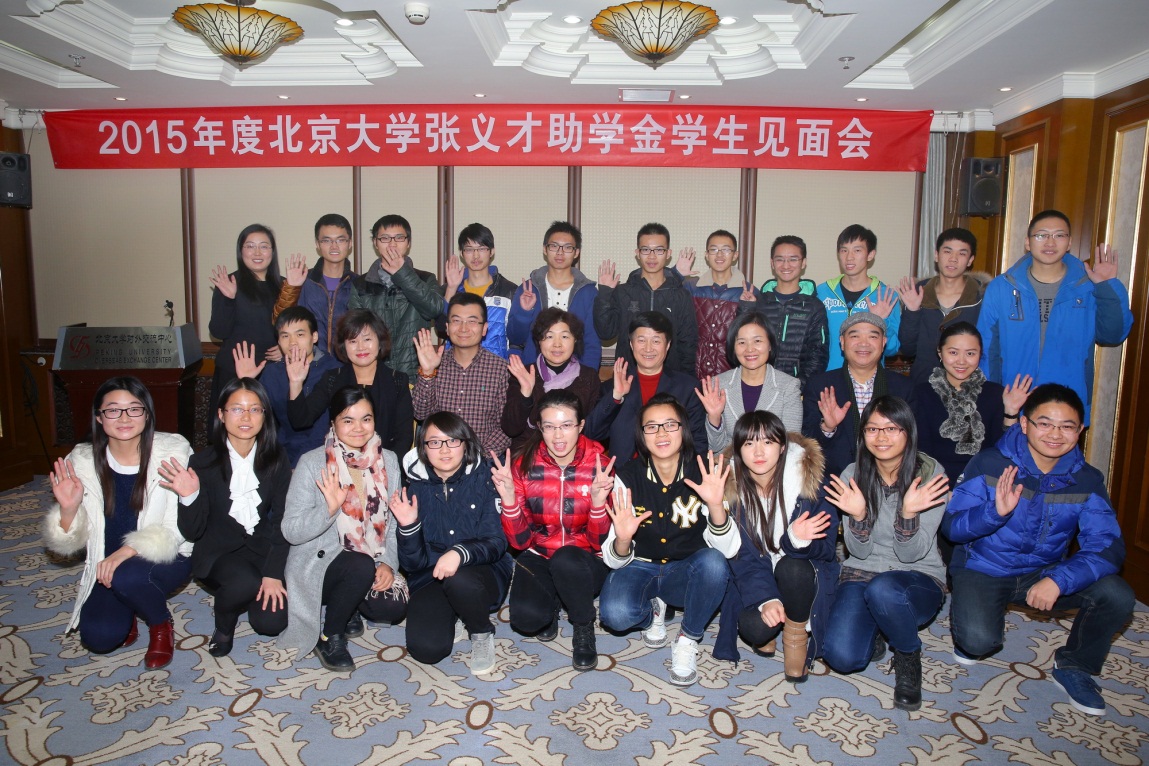 12月13日,2015年度张义才助学金学生见面会在英杰交流中心举行。上海随心投资有限公司董事长张义才先生,总经理章树江先生,副总经理王懿男先生,北京大学校长助理、教育基金会秘书长邓娅,学生资助中心主任杨爱民等出席。见面会由北京大学教育基金会副秘书长赵文莉主持。
