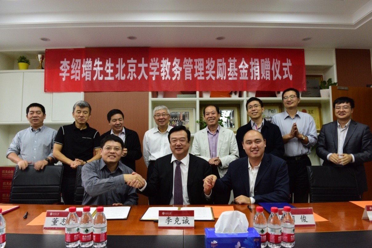 9月29日,宏盛国际集团与北京大学教育基金会、北京大学教务部签署捐赠协议,在北京大学设立教务管理奖励基金。首期人民币80万元,用于聘用和奖励全校教务管理人员以及支持开展国内外教学考察和调研、教师教学发展等方面的工作。协议签署仪式在北京大学新太阳学生中心举行。宏盛国际集团董事长李绍增先生的私人代表李克诚先生,北京大学副教务长方新贵教授、教务部部长董志勇教授和基金会副秘书长胡俊等出席仪式,仪式由教务部副部长金顶兵主持。