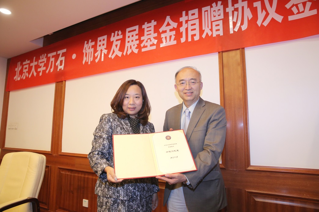 金秋燕园,启航梦想更收获回馈。9月20日,北大1986级校友伉俪、万石画艺有限公司创始人杨瑞祥先生、方晓蕊女士与北京大学常务副校长、北京大学教育基金会副理事长吴志攀教授签署捐赠协议,设立万石•饰界发展基金,支持北京大学人才培养事业的发展,助力北大学子全面成才。捐赠仪式在临湖轩举行。
